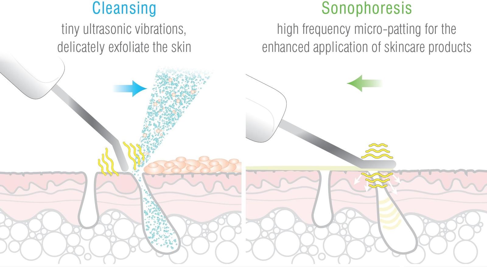 💎 ultrazvukové vibrácie odstraňujú odumreté kožné bunky a nečistoty z kože