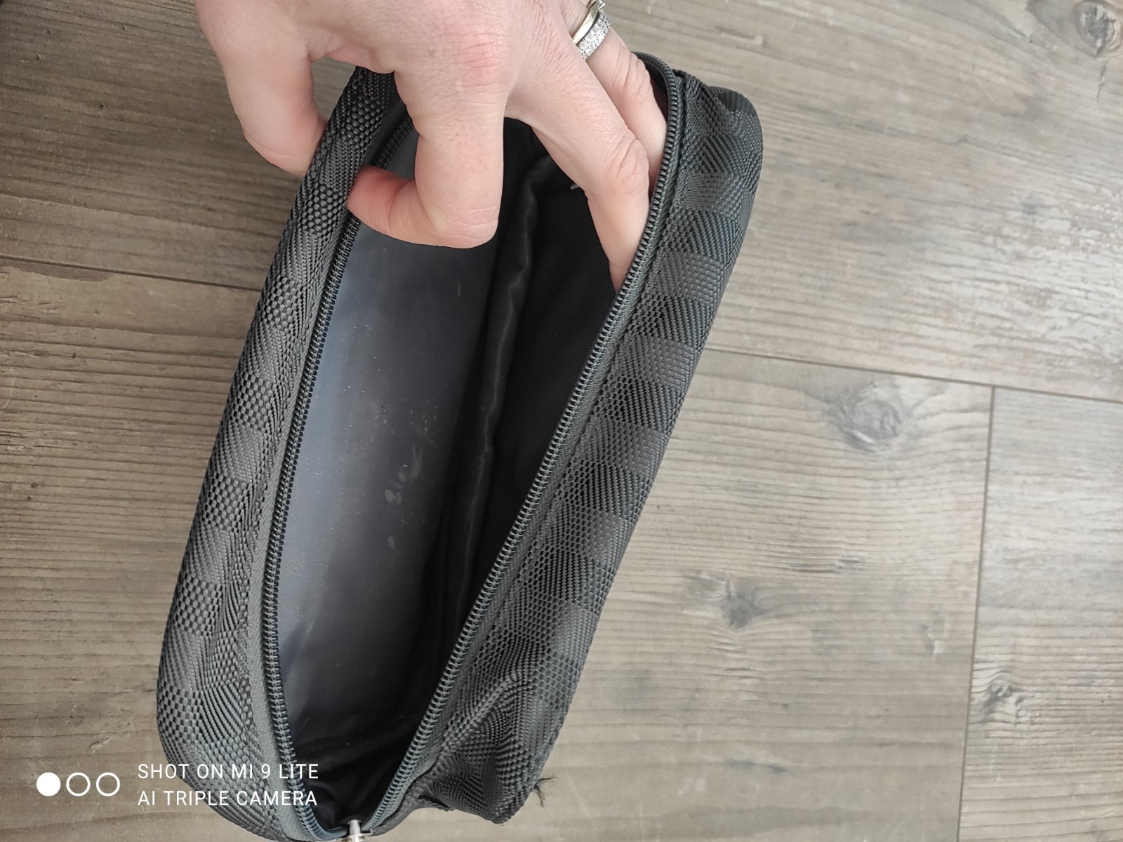 pouzivana kozmeticka tasticka v sedej farbe. unisex, stredne velka
