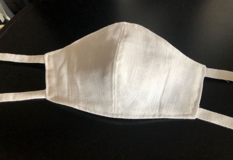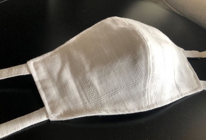 Dvojvrstvové bavlnené obojstranné biele rúška so šnúrkami okolo hlavy alebo s gumičkou za uši.