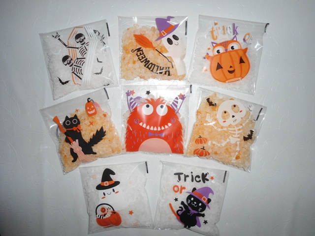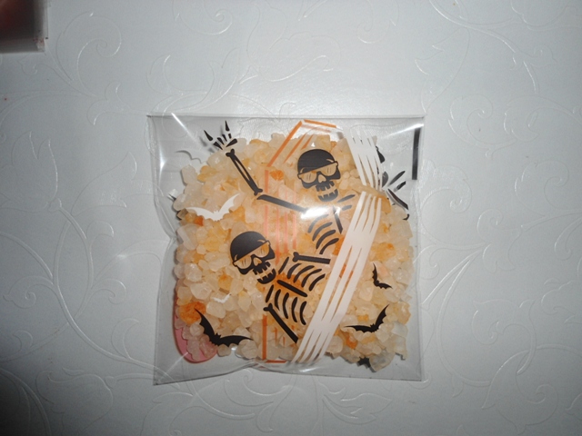 68. Morská soľ do kúpeľa - MIX balíčkov Halloween, veľký výber voní a farieb podľa vlastného želania, balenie obsahuje 150g soli, vone oleja na zjemnenie pokozky, farby a darčekové balenie podla vlastneho vyberu, v ponuke aj sumive bomby do kupela.