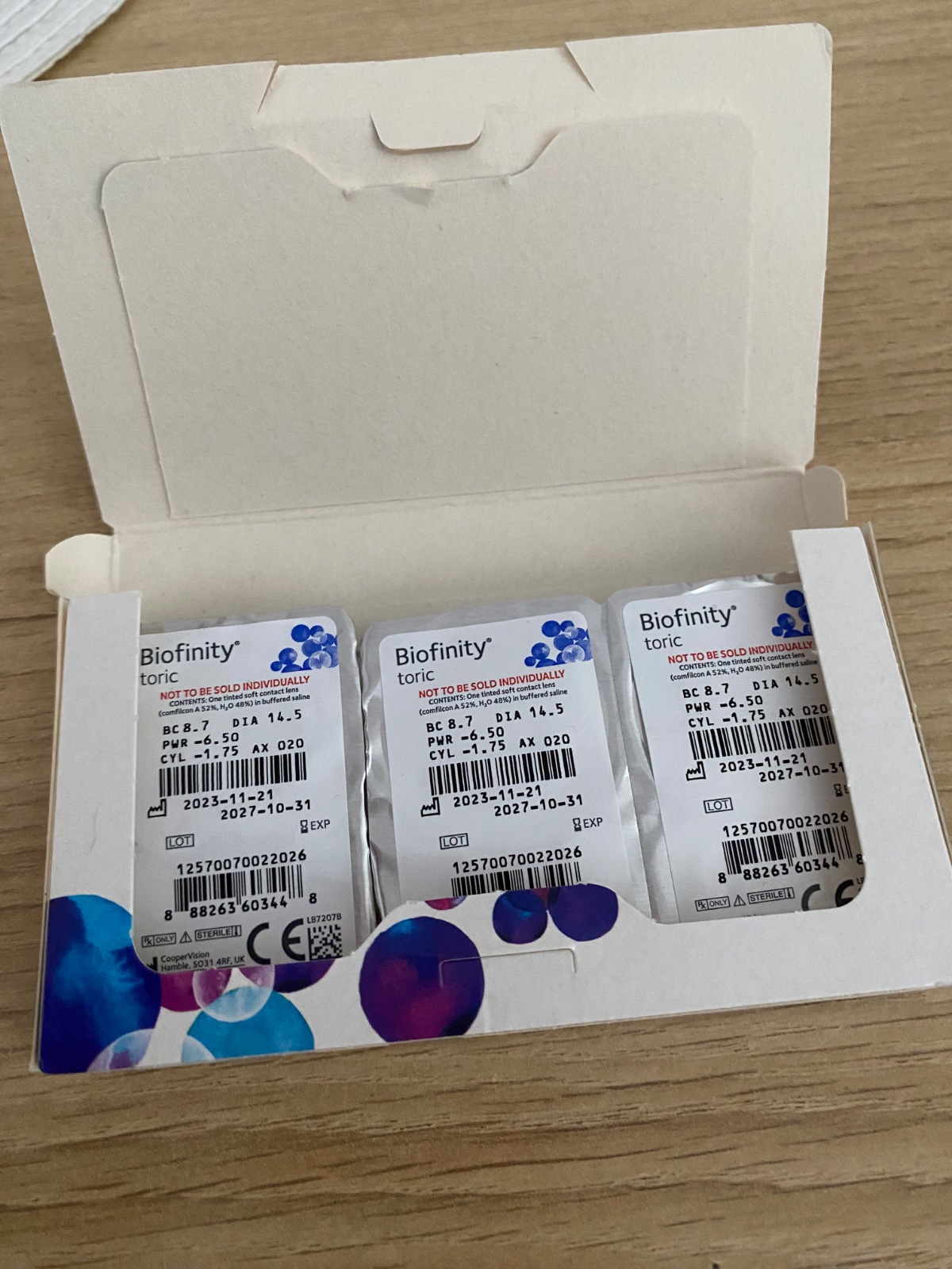 Predám nové tórické kontaktné šošovky značky Biofinity - CooperVision.