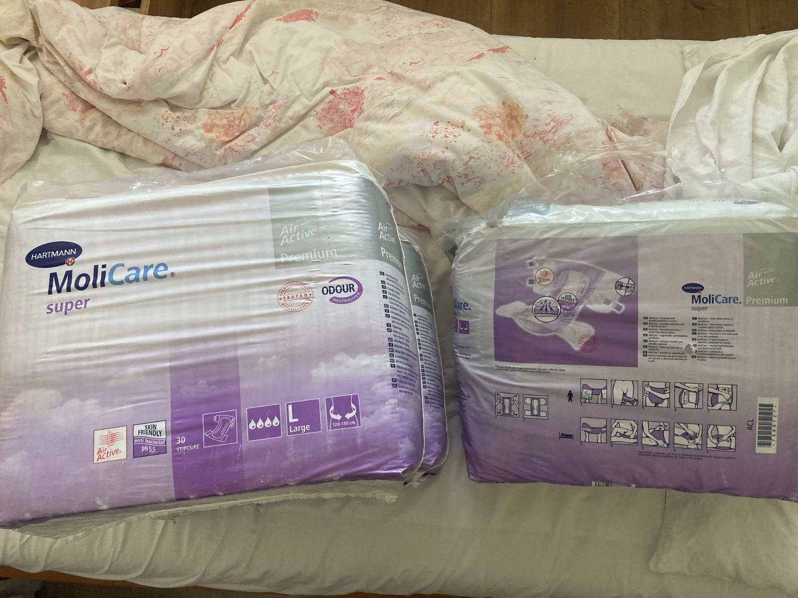 Predam 3 baliky plienok pre dospelych L. V jednom baleni30 ks. Jeden balik-odobrate 2 plienky. Cena za bal-8 eur. Spolu 22 eur-vsetky baliky. Preferujem osobny odber. Komu treba, v inzerate dalsie balenia. Nam uz netreba.
