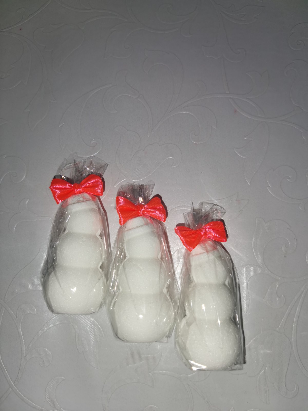 833. šumivé bomby do kúpeľa - biely snehuliak mix, vo vode vysumi a olej necha pokozku hladku a vonavu, cena za kus 0,50e, kus ma cca 15-20g, rucna praca