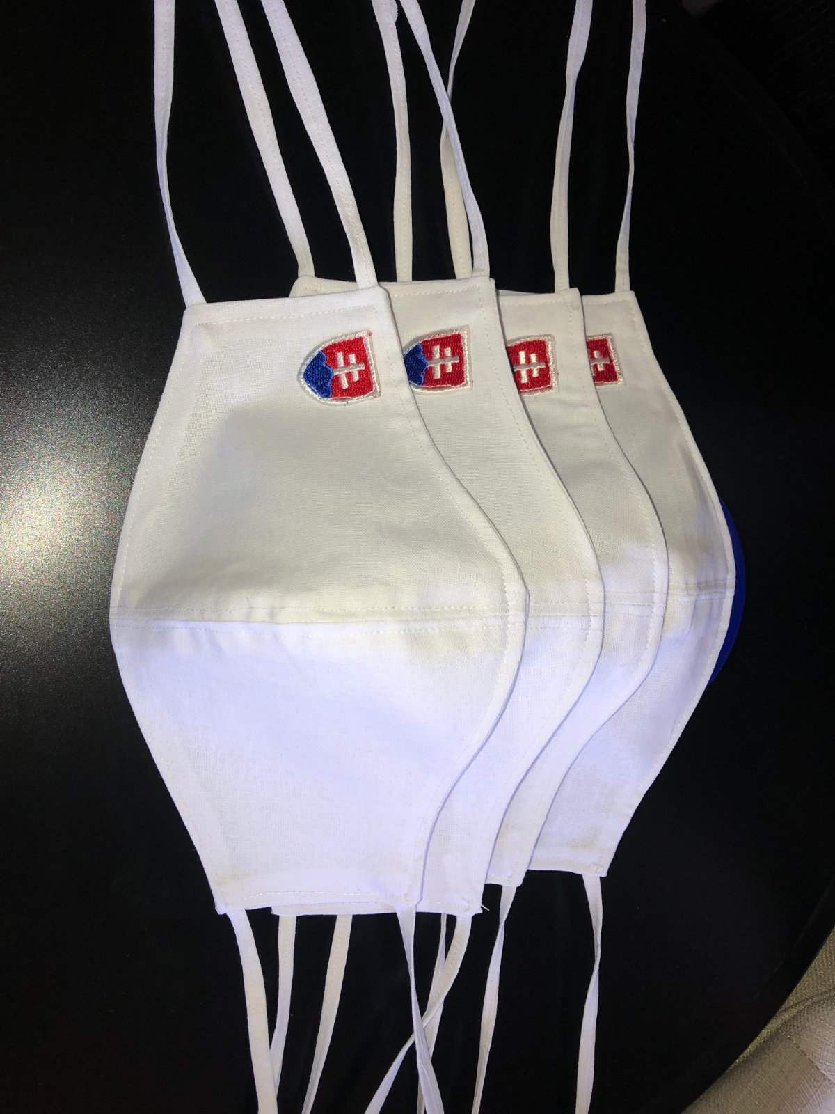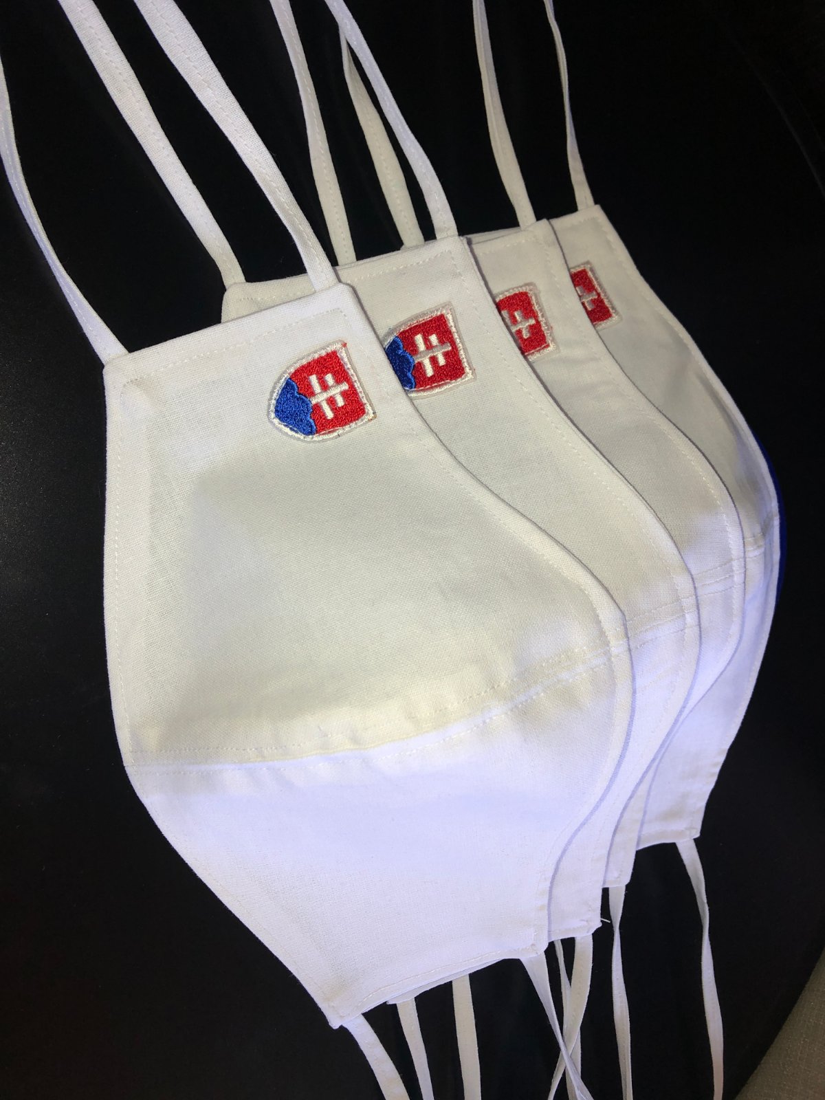 Dvojvrstvové obojstranné biele handmade rúška, bavlna. Sú so šnúrkami okolo hlavy, v prípade potreby s gumičkou za uši. Mám skladom viac kusov. Aj čierne. Rúška šijem len zo 100% bavlny aby sa dali opakovane použiť po praní. Každé rúško je po výrobe a pred odoslaním dezinfikované prežehlením.