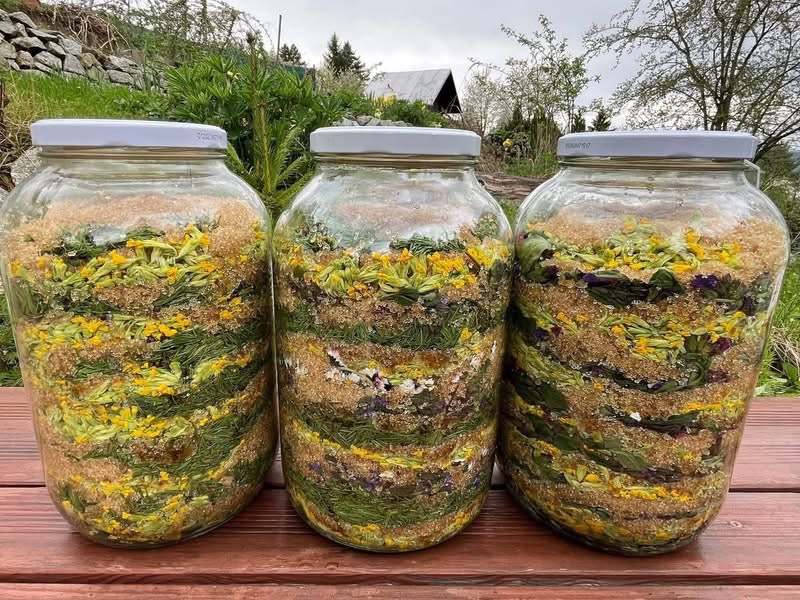 Vyrábam ho tradičným spôsobom bez pridania vody , ako robili naše babičky.... bylinky / viď foto/ presypávam trstinovým cukrom...pridám citrón...výroba trvá niekoľko týždňov.... výsledný sirup je hotový až vtedy, keď sa cukor prirodzene rozpustí