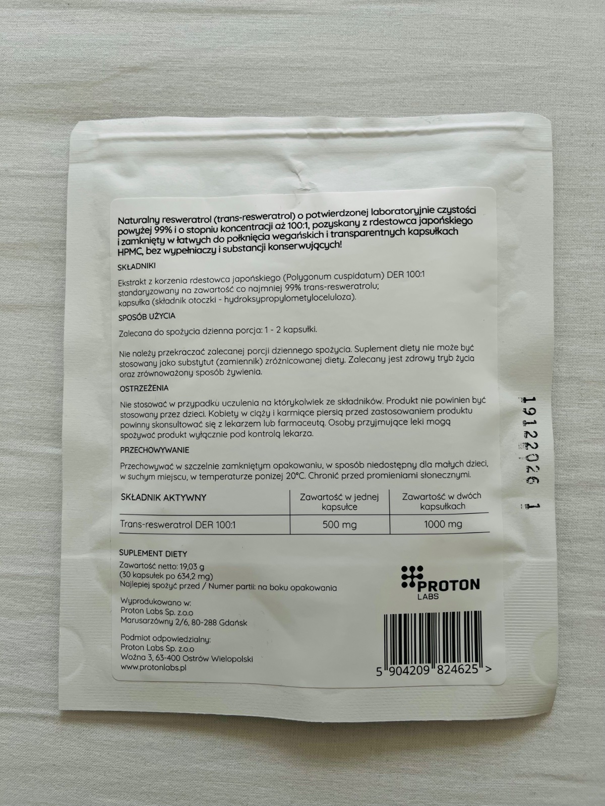 Resveratrol (Trans-resveratrol) 500 mg – Proton Labs
