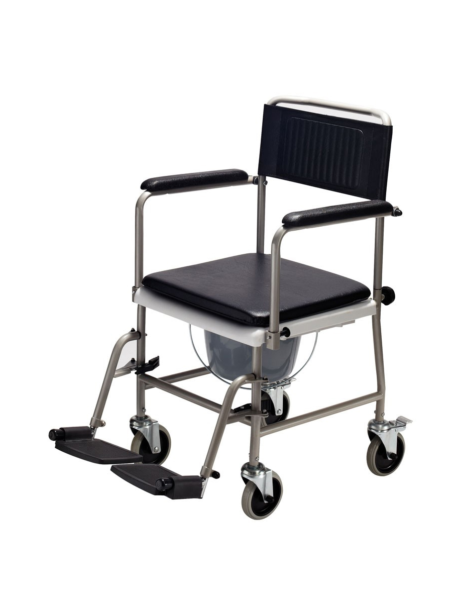 Nové nevybalené toaletné kreslo, používa sa ako náhrada WC pre imobilných pacientov s pohybovými problémami, je výškovo nastaviteľné, je určený na používanie ako vozík toaletný, prípadne ako vozík transportný. Toaletné vedierko je možné vytiahnuť smerom vzad a vozík použiť aj nad bežnou WC misou. K tomu napomáha aj celková šírka vozíka, ktorá je len 56 cm, čím sa zmestí aj do najmenších zárubní. Toaletná doska na vozíku je dezinfikovateľná, pretože je vyrobená z plastu. Vozík je opatrený štyrmi malými kolieskami, ktoré mu zabezpečujú veľkú obratnosť. Zadné kolieska sú vybavené brzdou, ktoré zabezpečia vozík na požadovanom mieste. Pôvodná cena : 165 eur