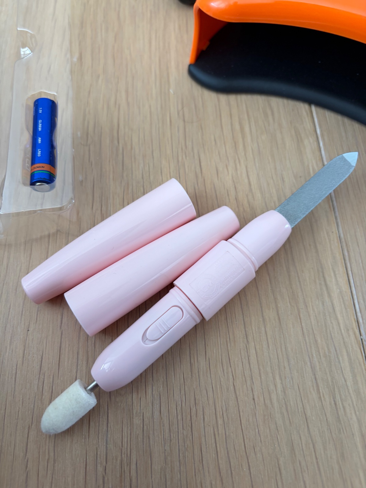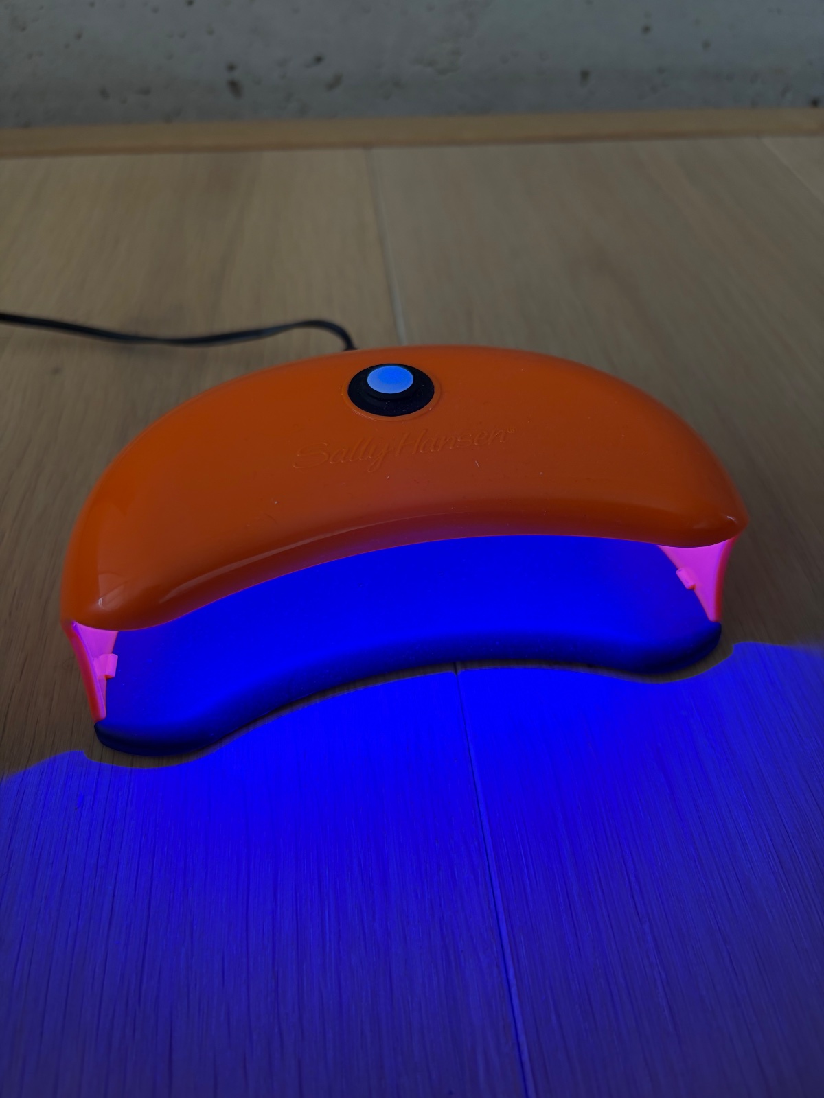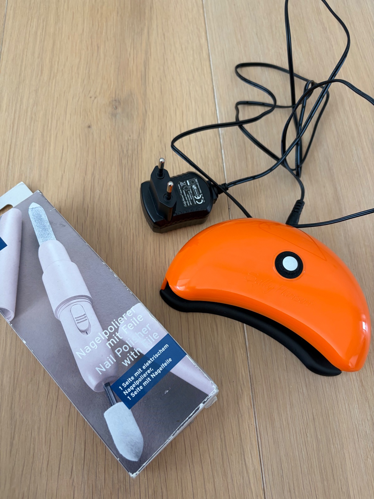 Sally Hansen lampa na nechty a k tomu pilnik na baterky Tchibo.