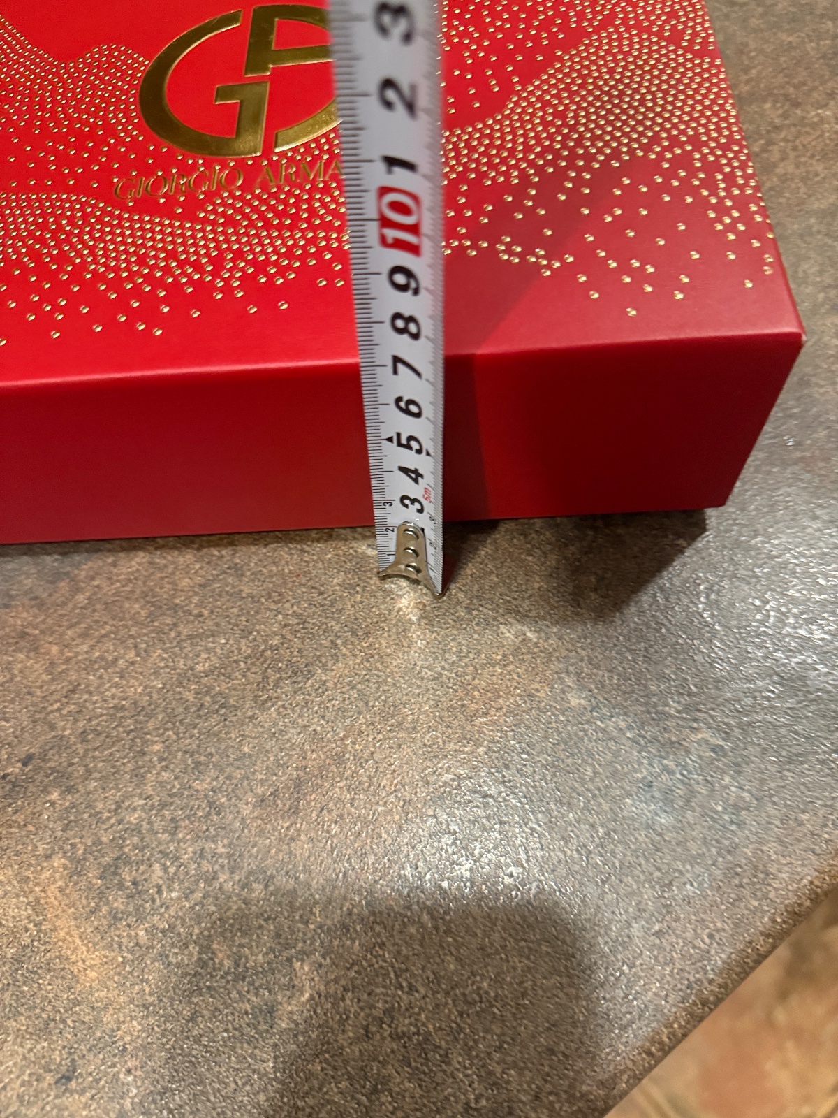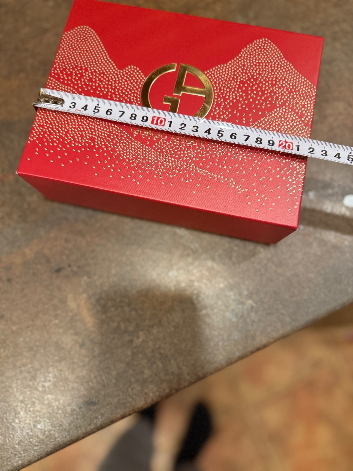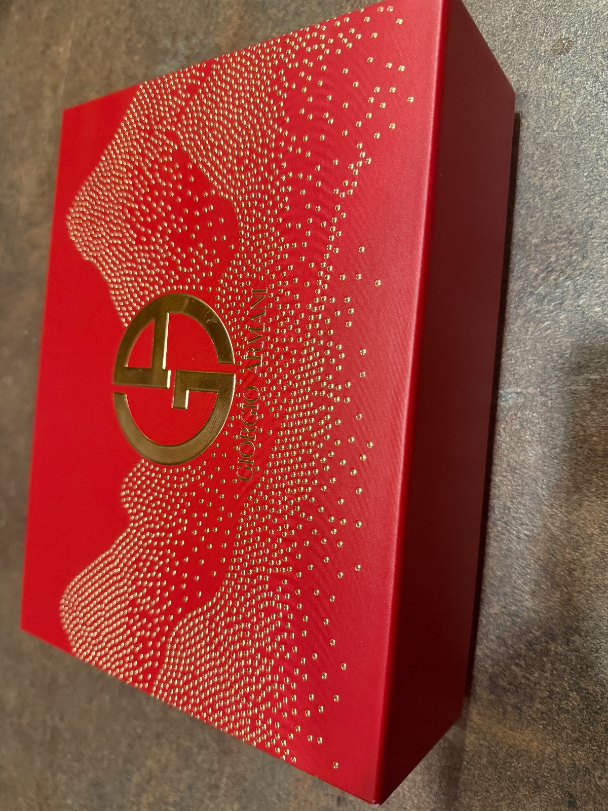 Luxusná darčeková krabica giorgio armani – červená so zlatým detailom
