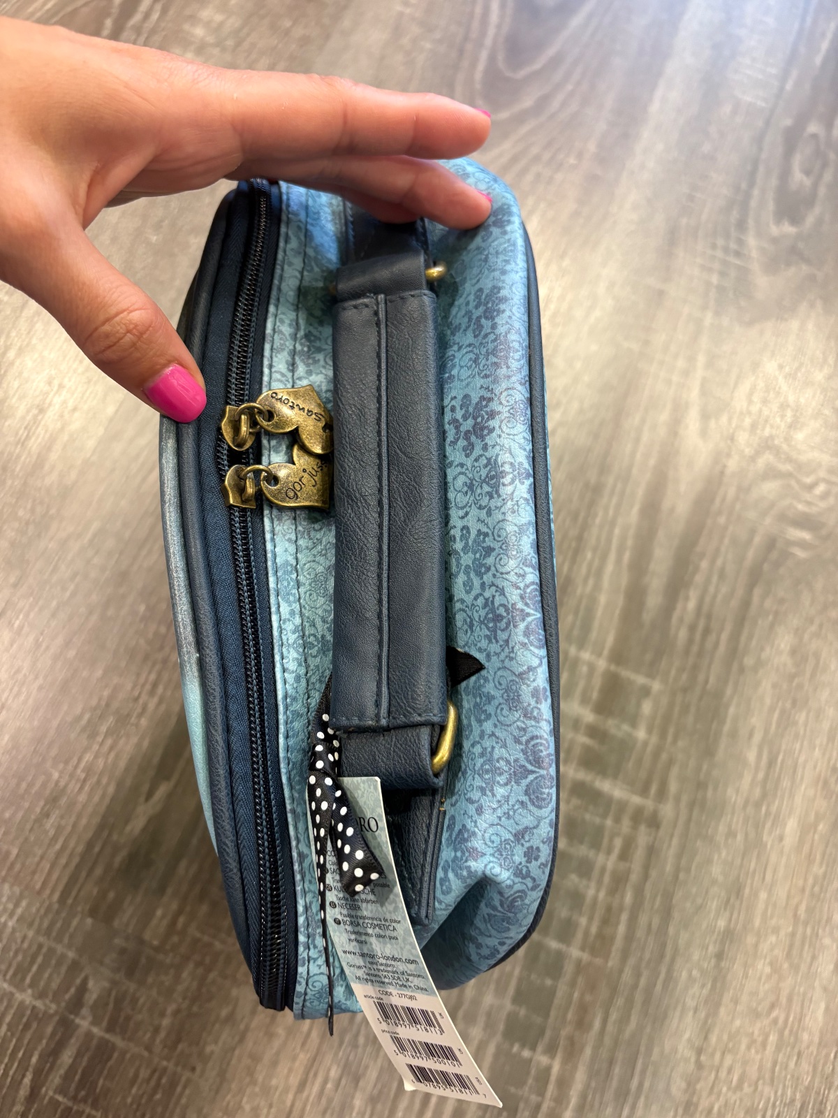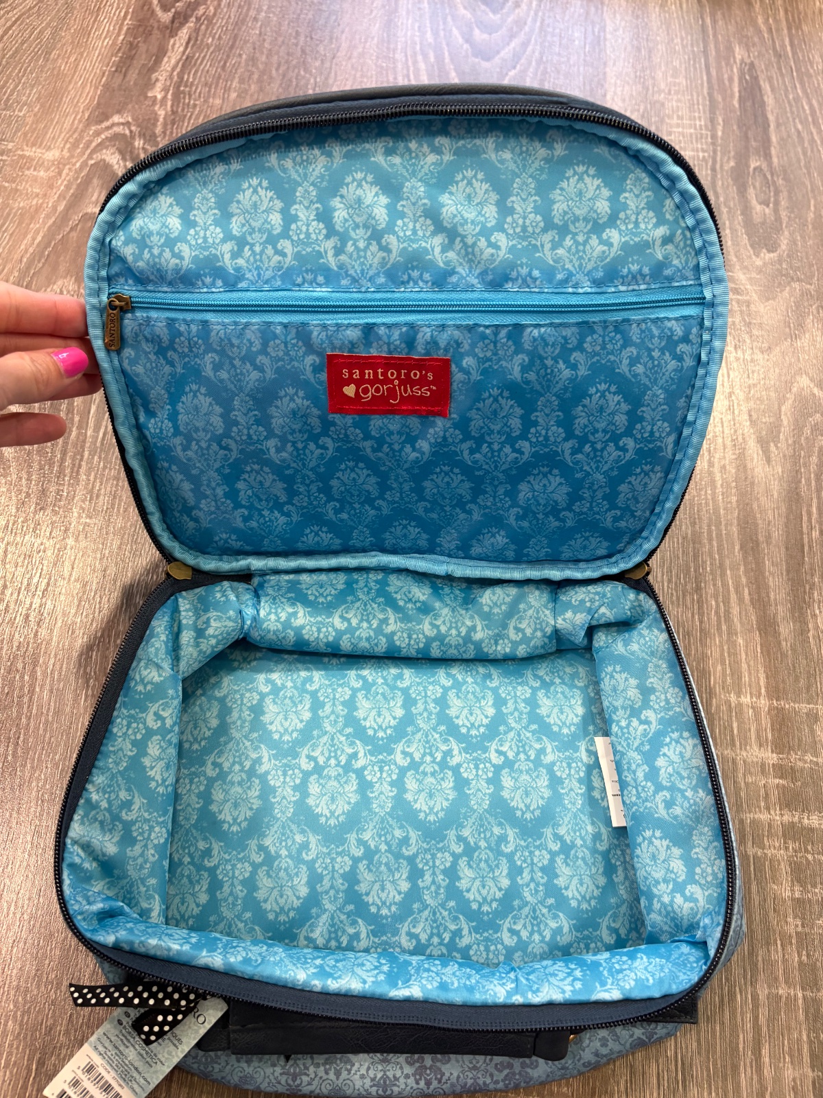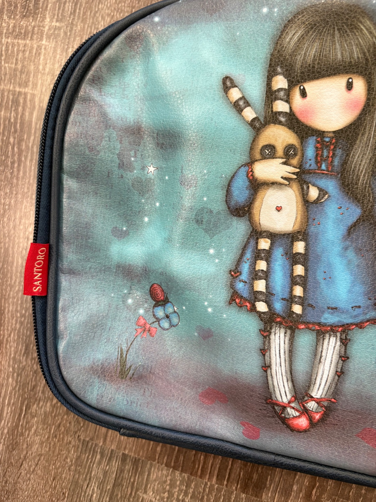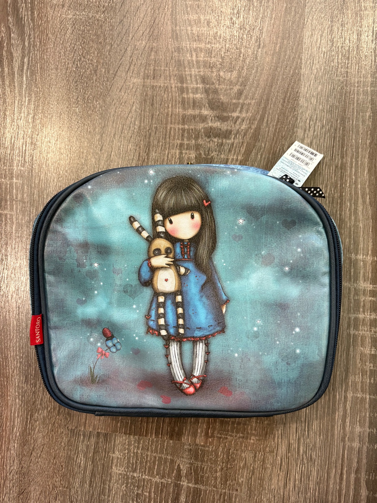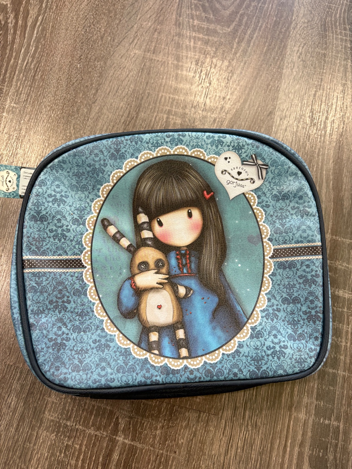 24p2k.Elegantný a praktický kufrík s rúčkou v odtieňoch tyrkysovej a modrej, s roztomilým motívom „Hush Little Bunny“ zo série Gorjuss, je ako stvorený na cestovanie. Púzdro je ukončené zlatým zipsom v tvare srdca, vo vnútri má diskrétne vrecko na zips na odloženie drobností.