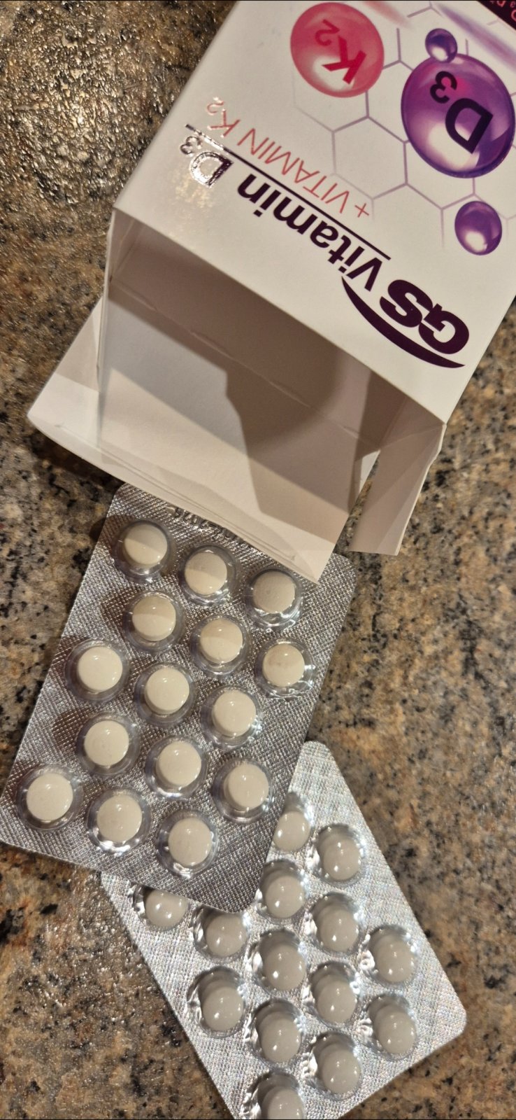 Vitamíny D3 a K2 pre podporu imunitného systému. Nevhodný dar, 30 tabliet, vhodné na podarovavanie. Dátum spotreby 06/2026.