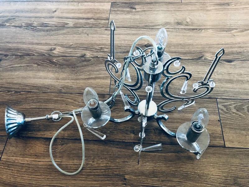 Predám tento moderný závesný luster, ktorý kombinuje elegantný chrómový kov s barokovými prvkami a čírymi akrylovými (alebo sklenenými) príveskami. Je ideálny do spálne, obývačky alebo chodby.