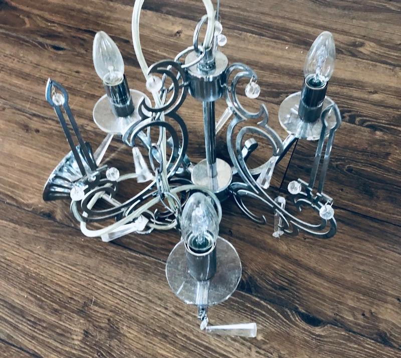 💡 Predám: Moderný Chrómový Luster s Akrylovými Kryštálmi (3 žiarovky) ✨