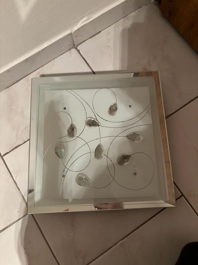 Lampa nebola vôbec namontovana, len my zavadzia v skrini....je to séria táto väčšia a 2 menšie-tie mám v kuchyni a tuto uz nevyužijem tak posúvam ďalej.... Nedostatky nafotene ...v skrini sa mi j...