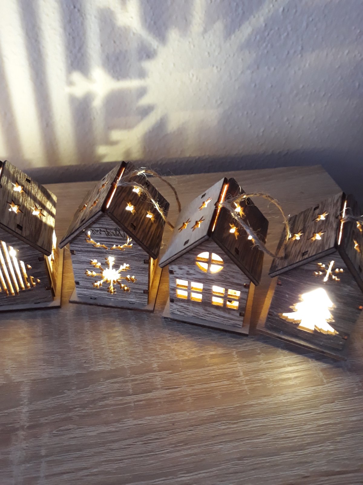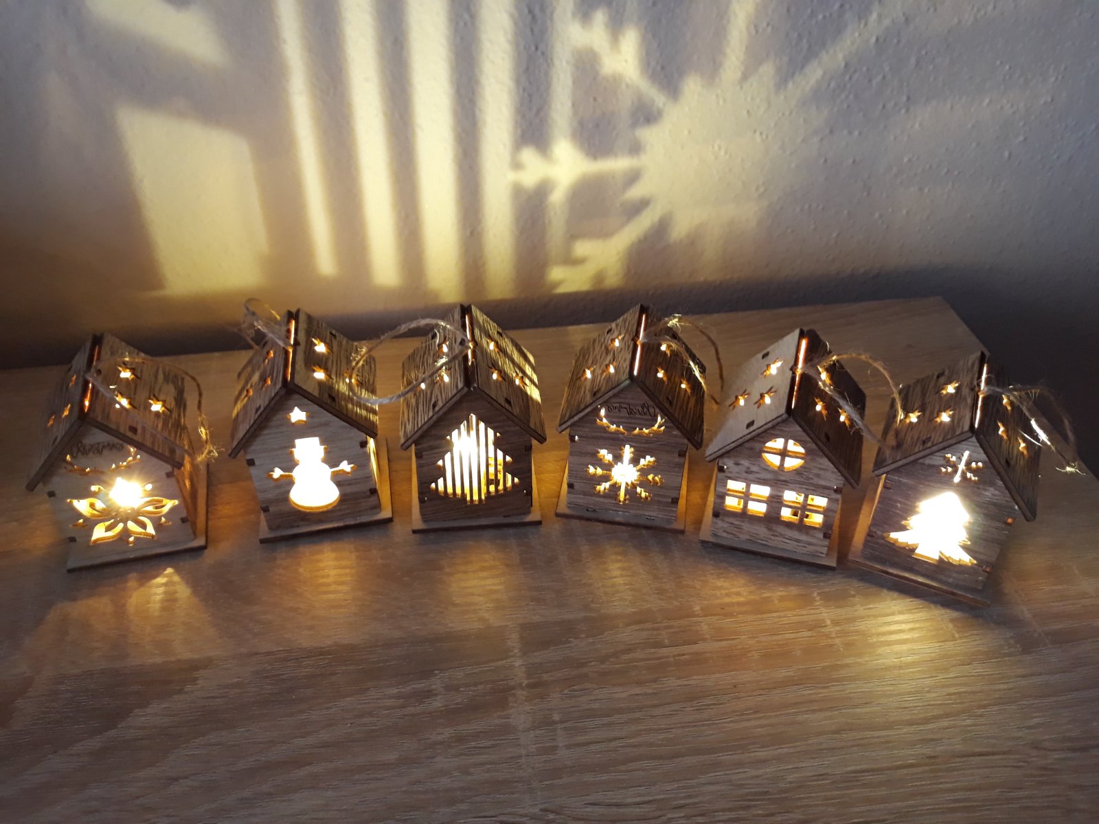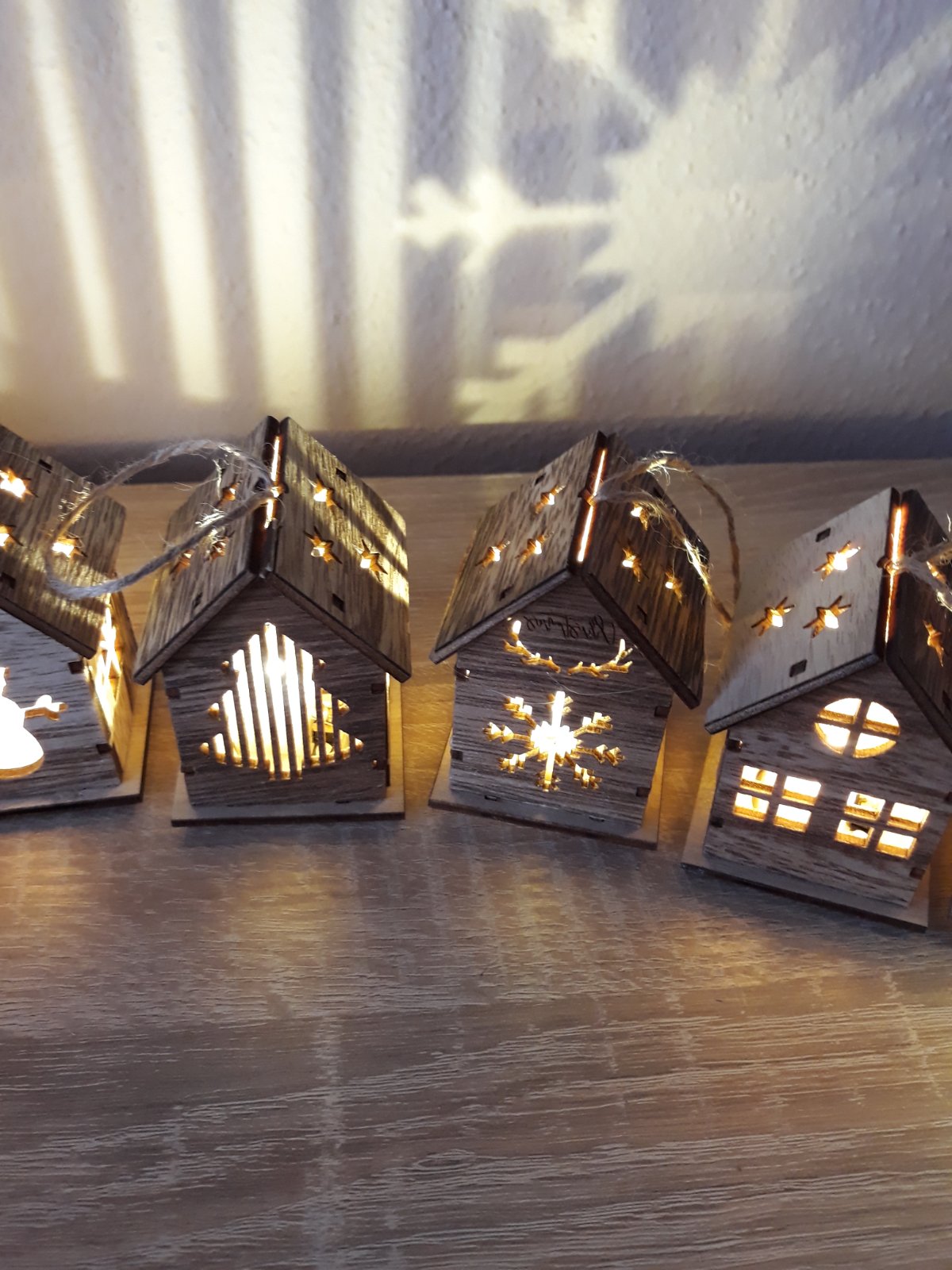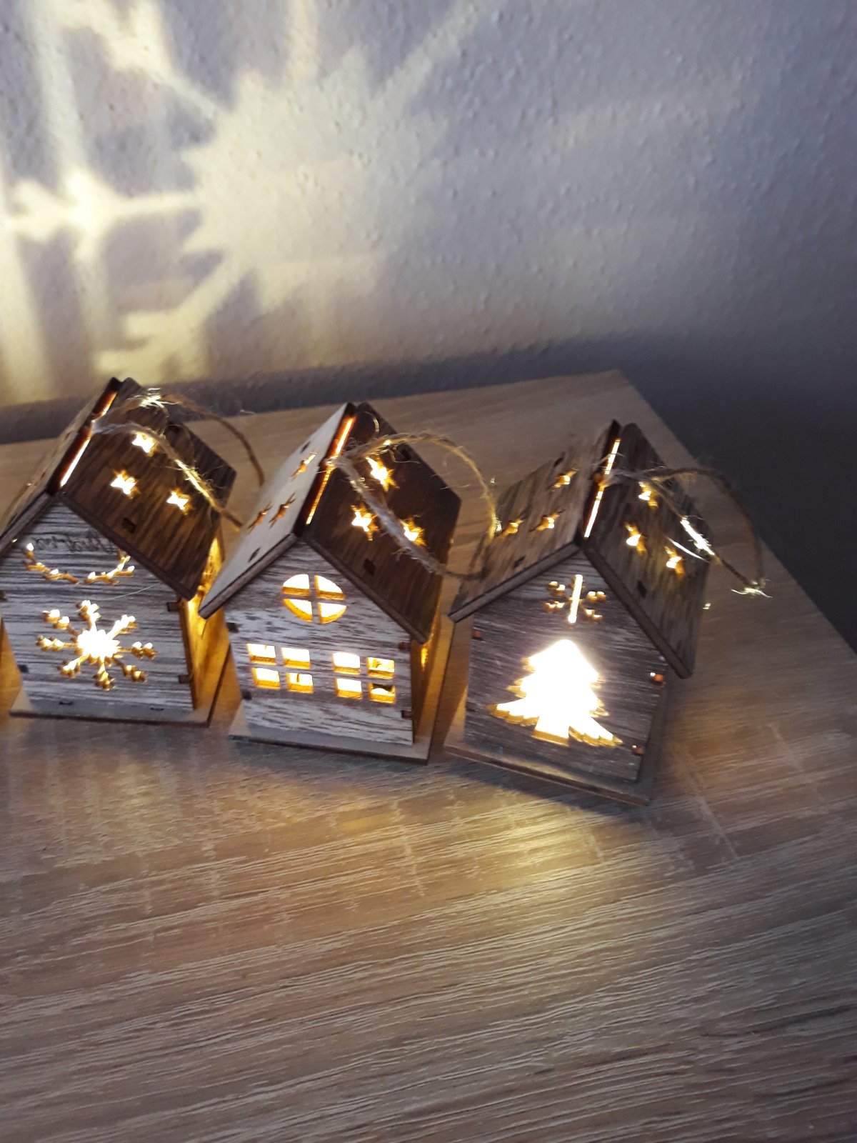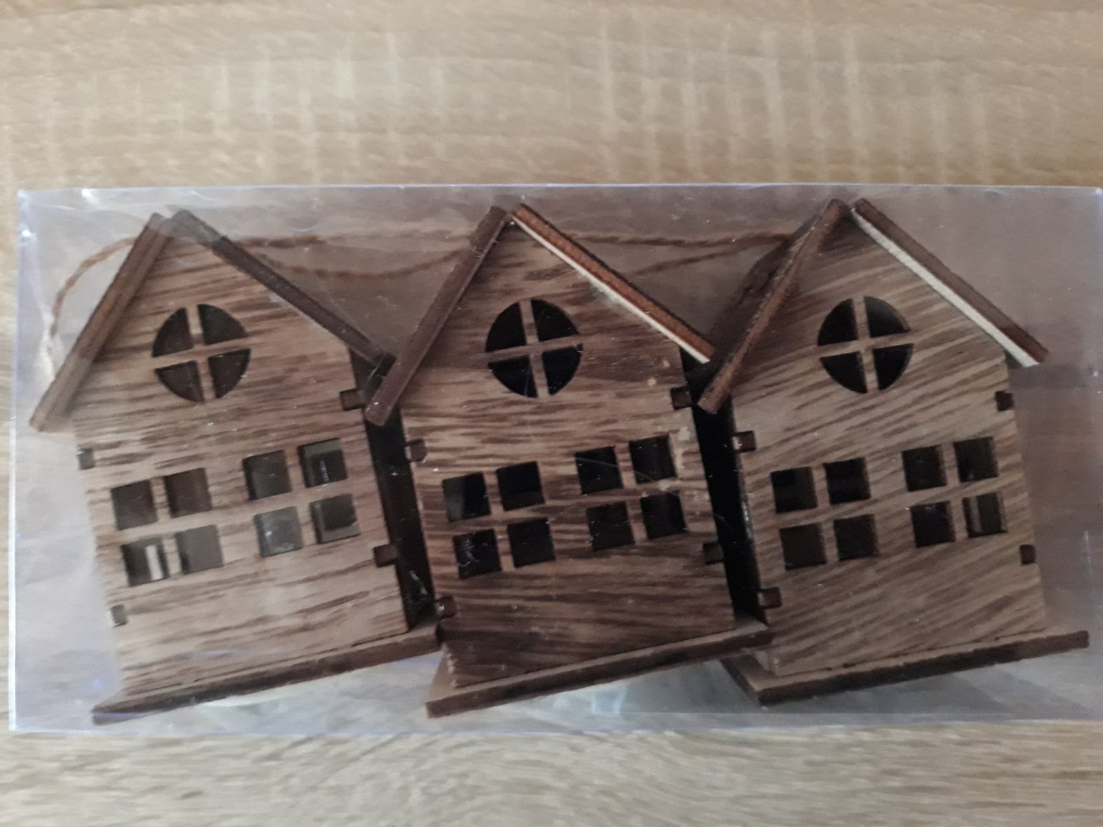 3 kusy svietiace domčeky s LED osvetlením. Na batérie - tie sa dajú aj vymeniť. Môžete zavesiť, alebo položiť na poličku. V ponuke 3 kusy - tie čo sú na poslednej foto - okienka