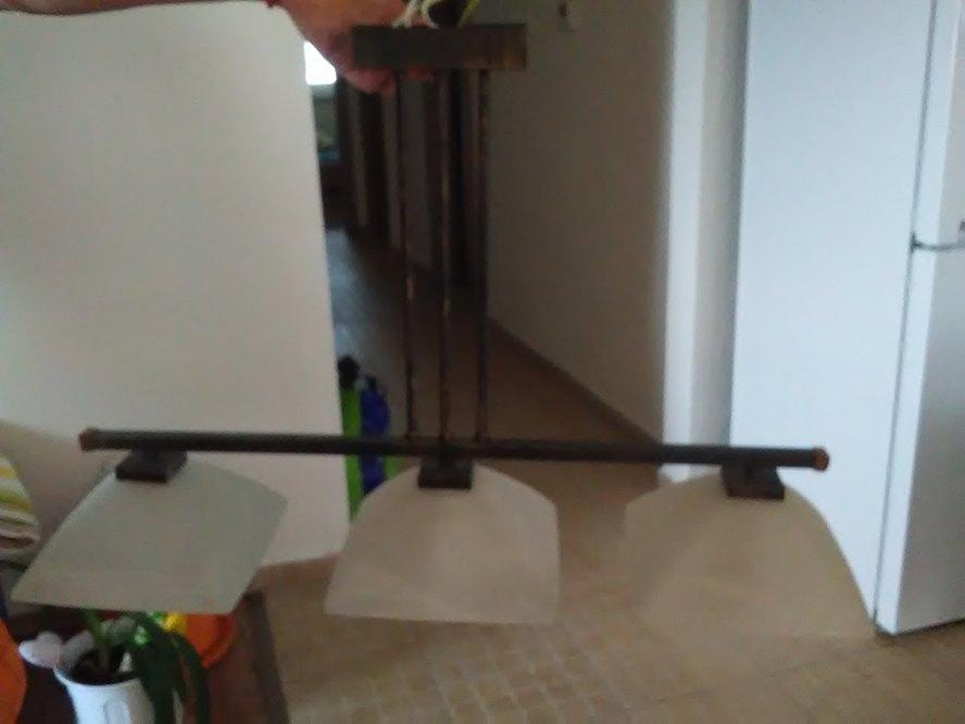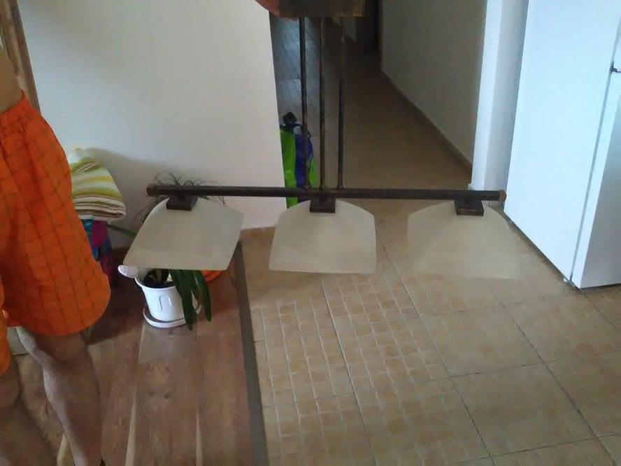 Ahojte, kedže sme prerábali obývačku a nám už nepasuje tento luster, posúvam ho dalej. Je zelezný s troma svetlami, lampy su z mliečneho hrubého skla. Svietivosť je výborná, je bez poškodenia a škrabancov. My sme ho kupovali za 150 € teraz ho posuniem za 50 € ,,Len osobný odber