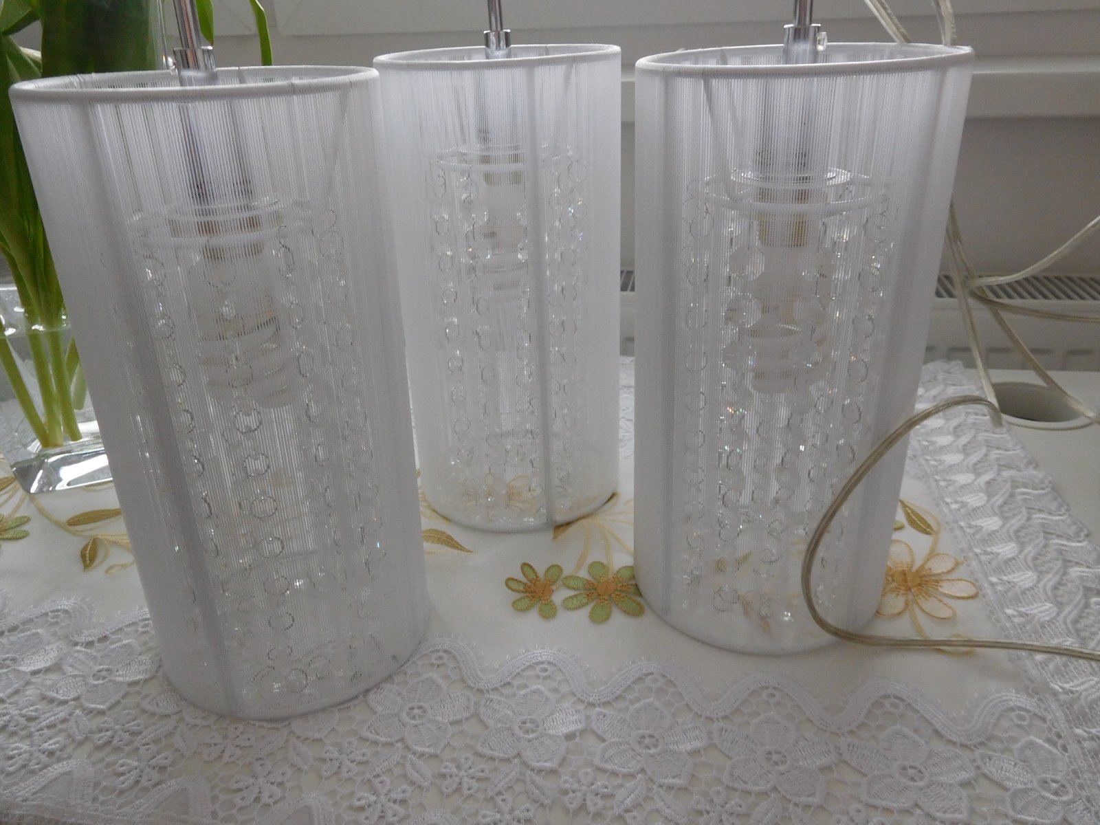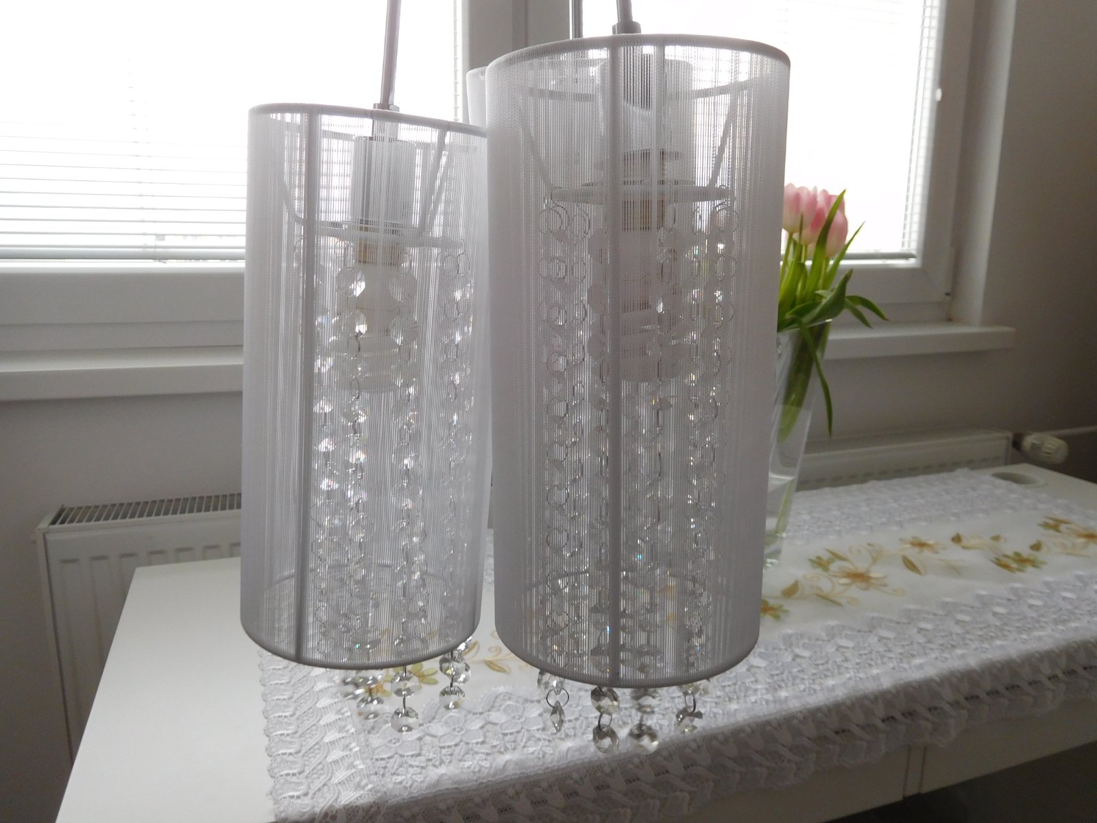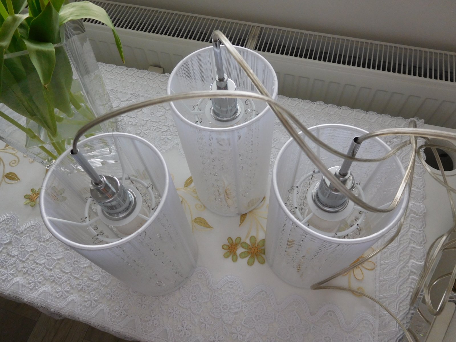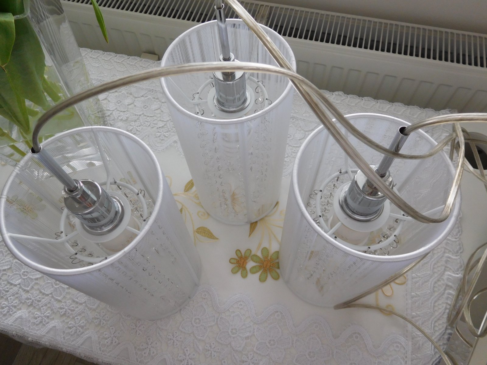 Ponúkam na predaj luster viď foto, bez akého koľvek poškodenia, dlžka jedneho bileho valca 30 cm,