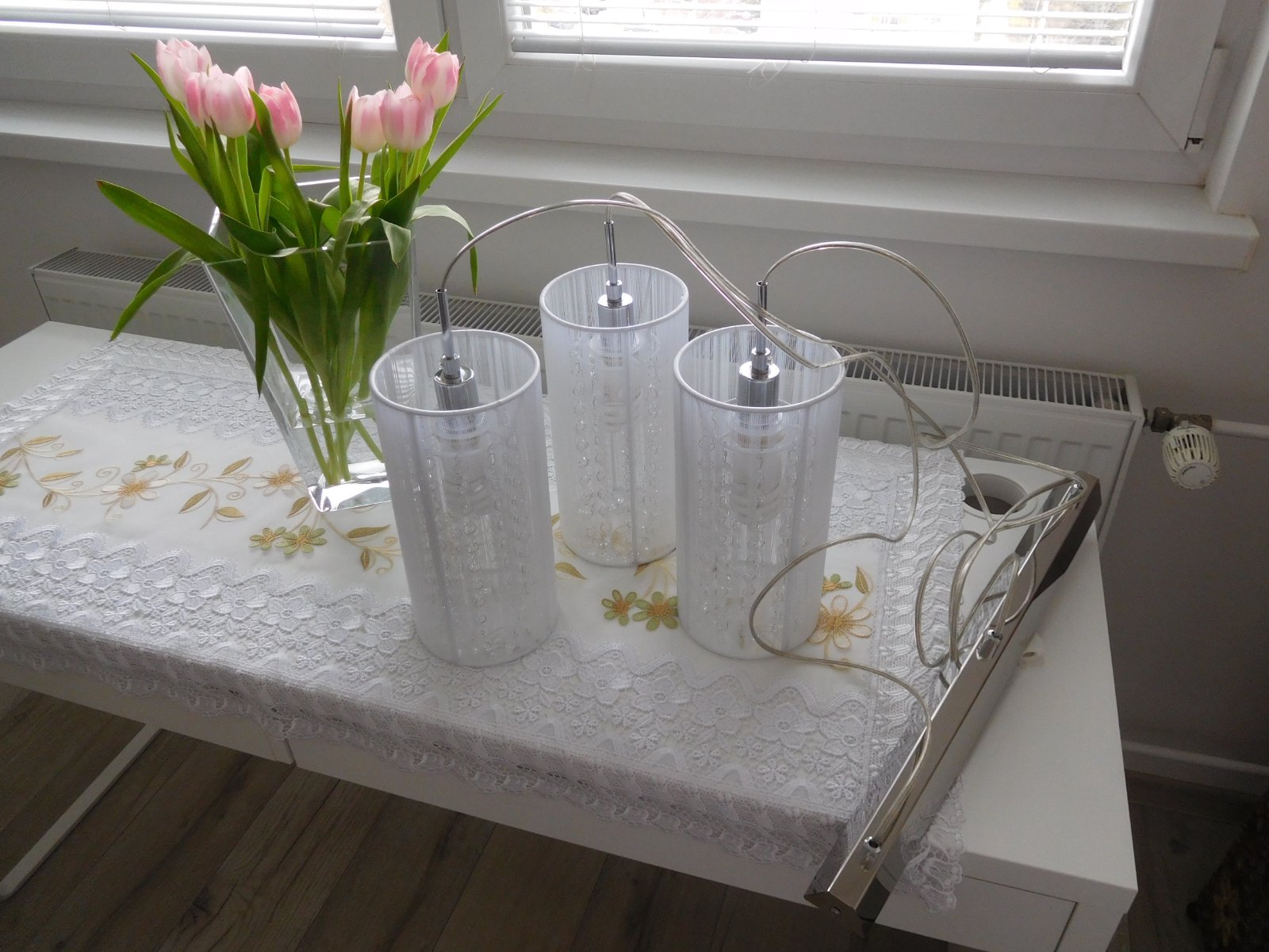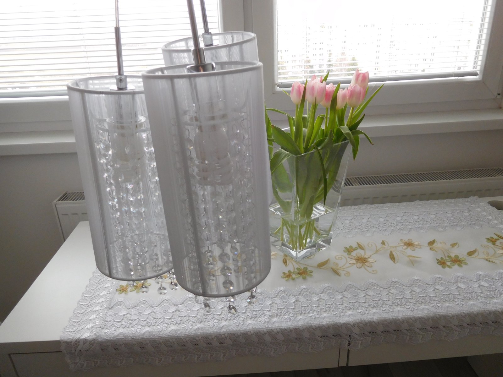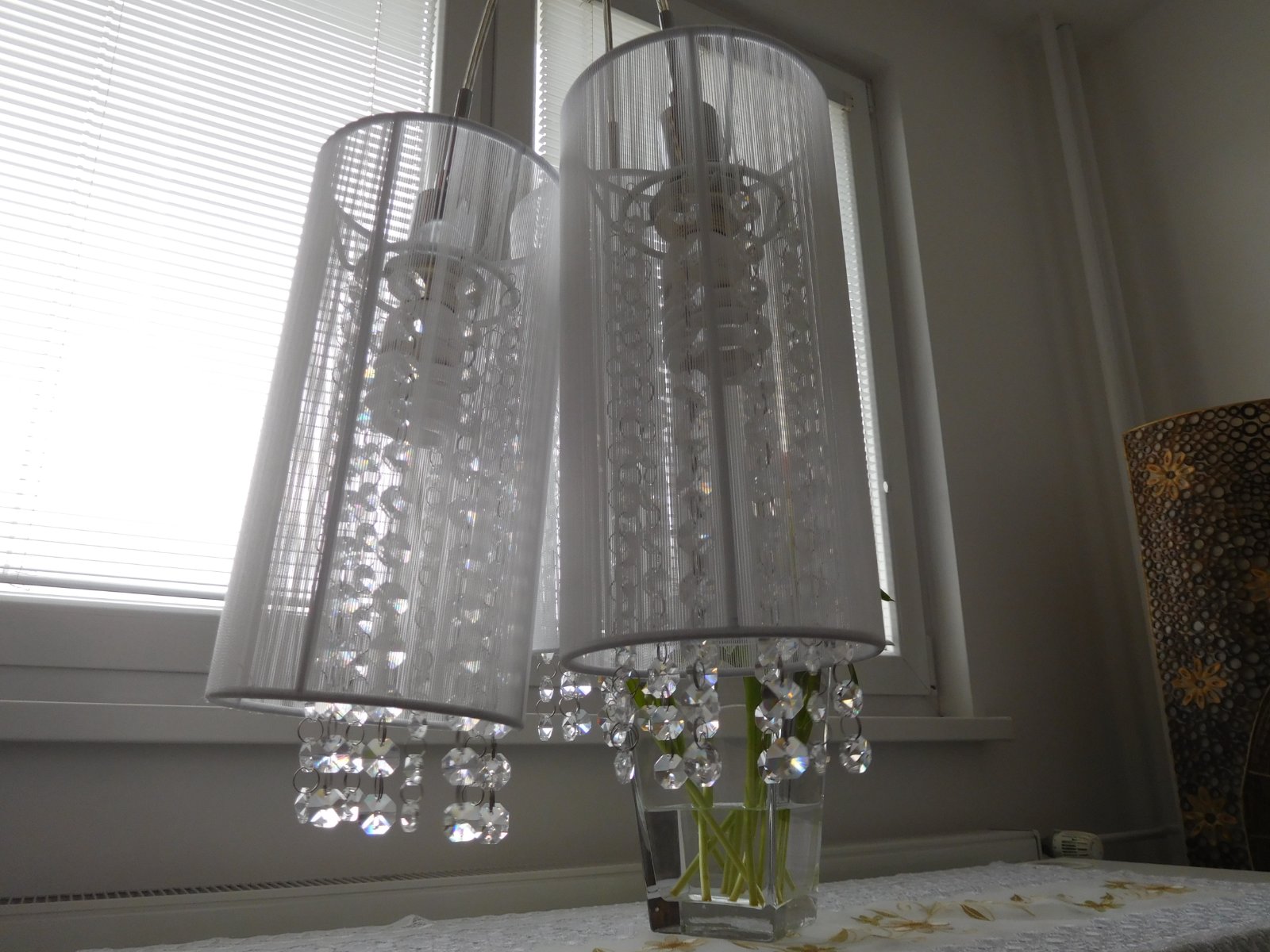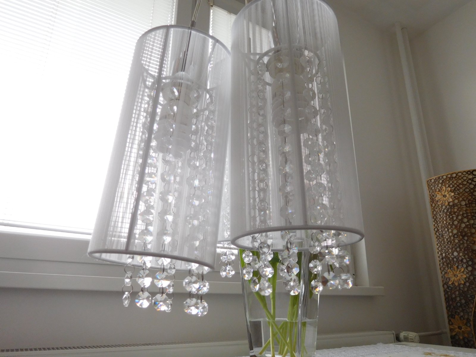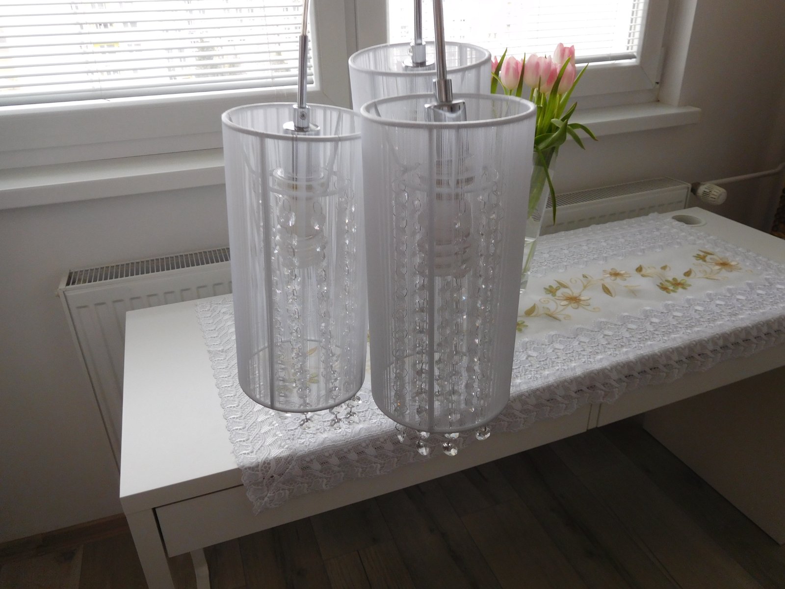 Ponúkam na predaj luster viď foto, bez akého koľvek poškodenia, dlžka jedneho bileho valca 30 cm,