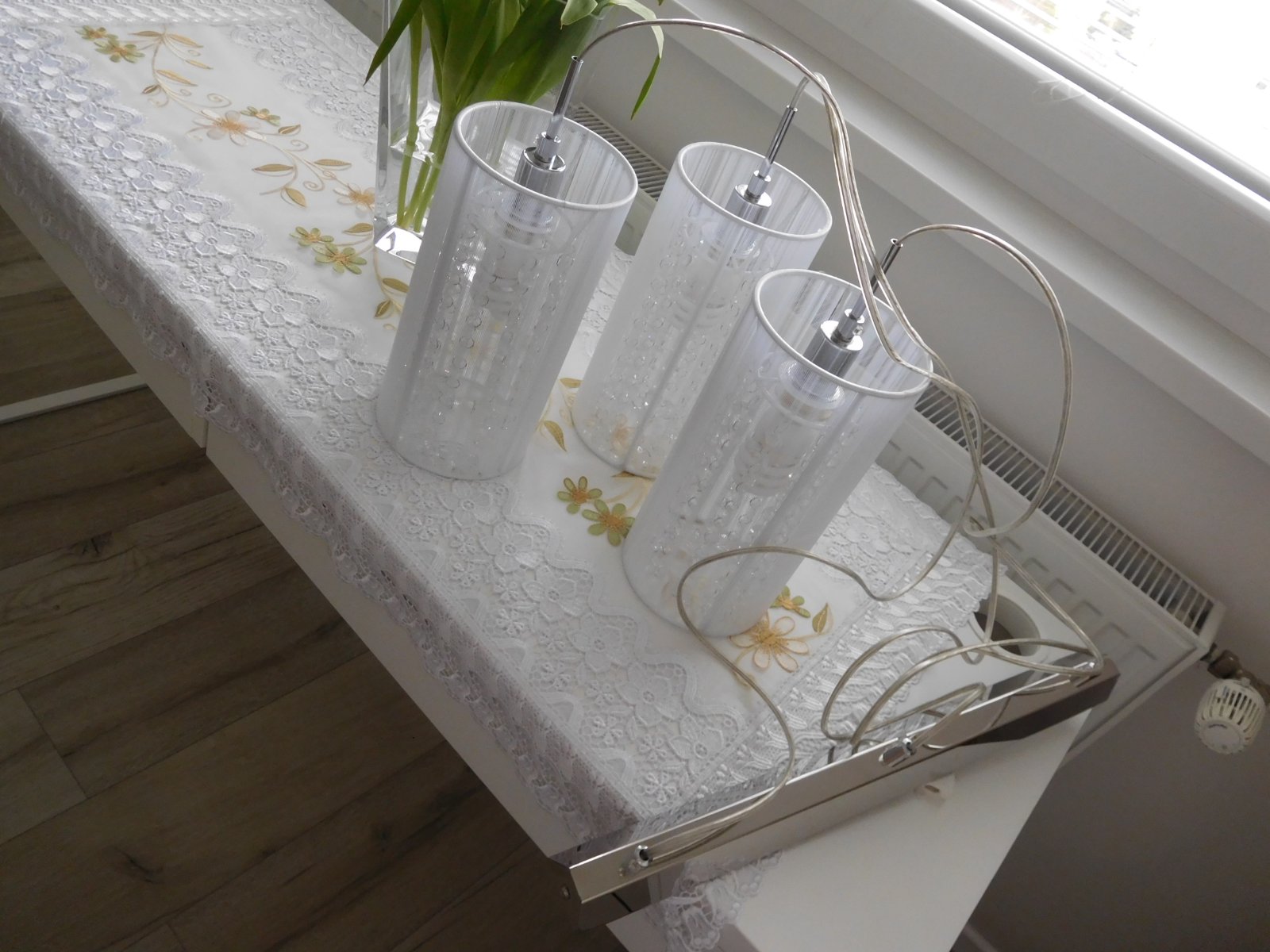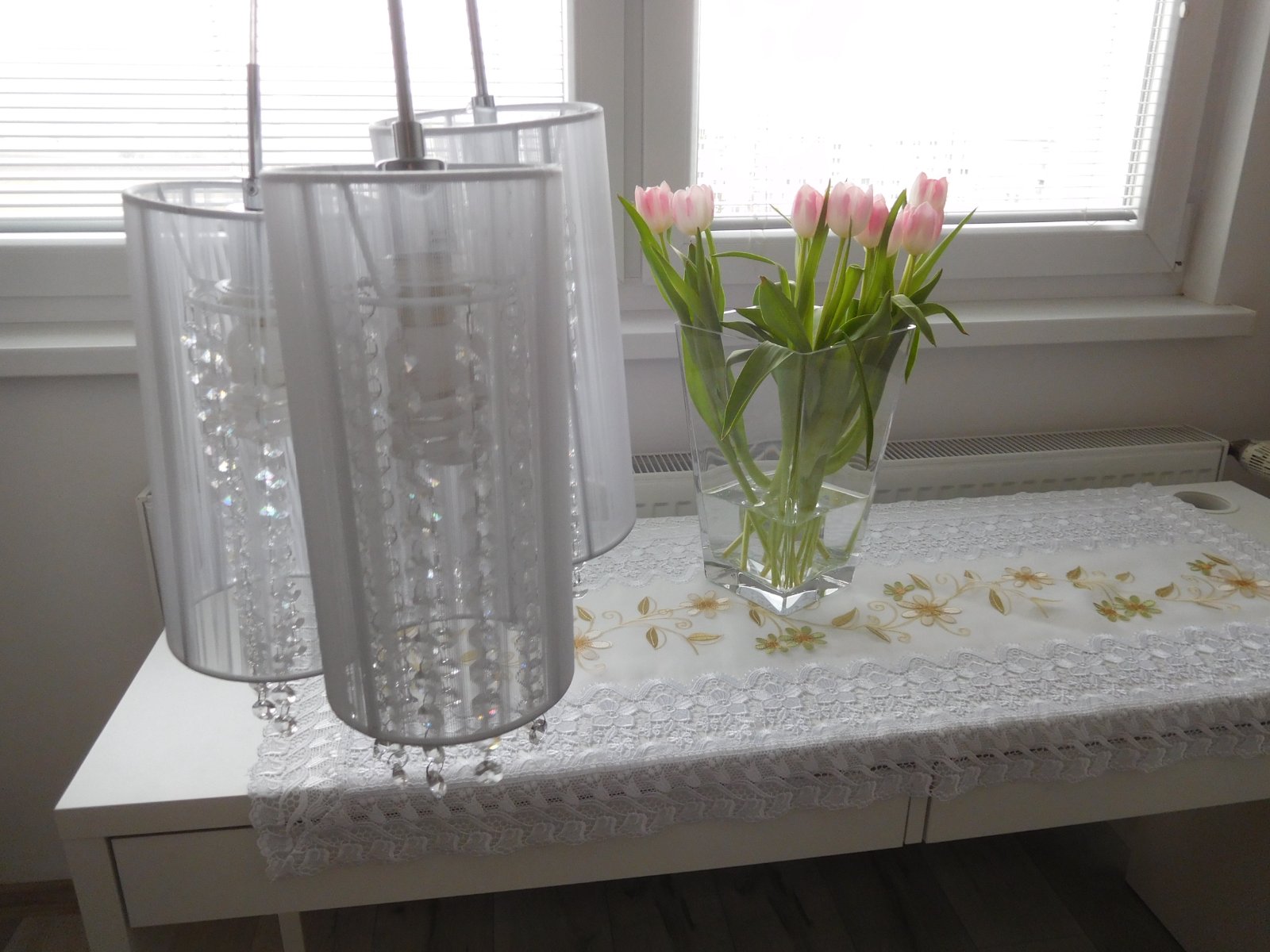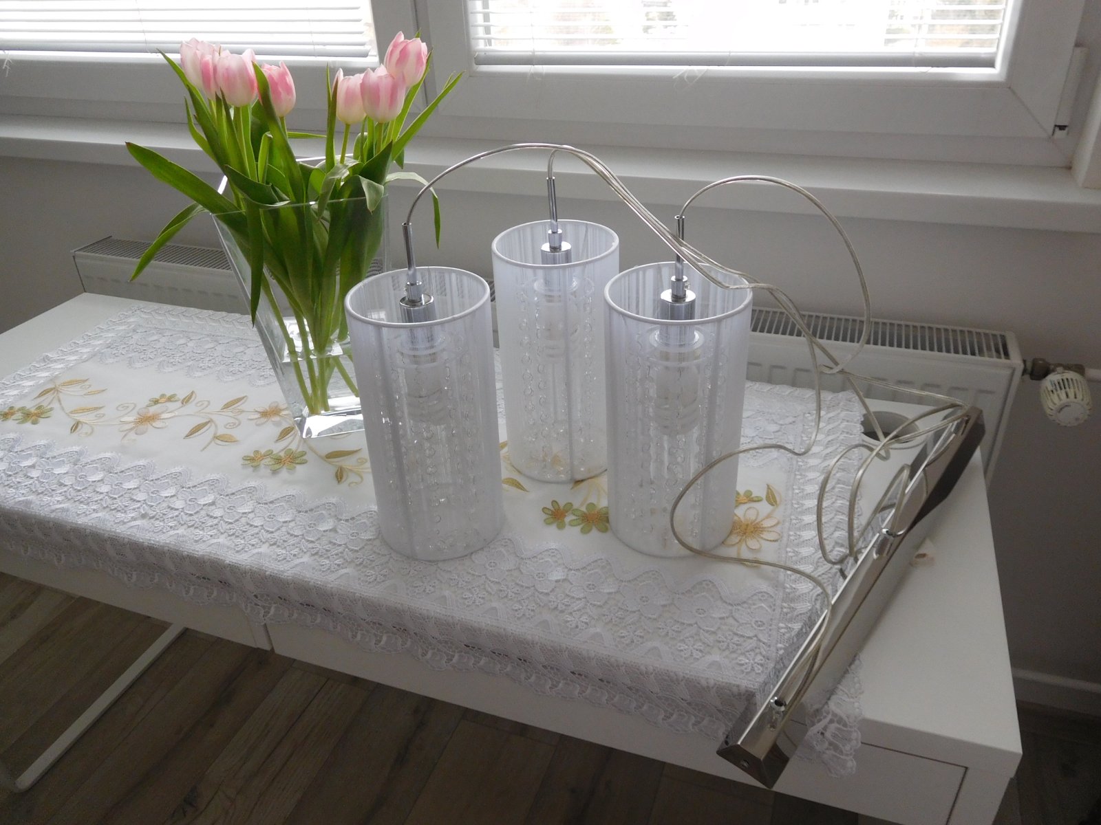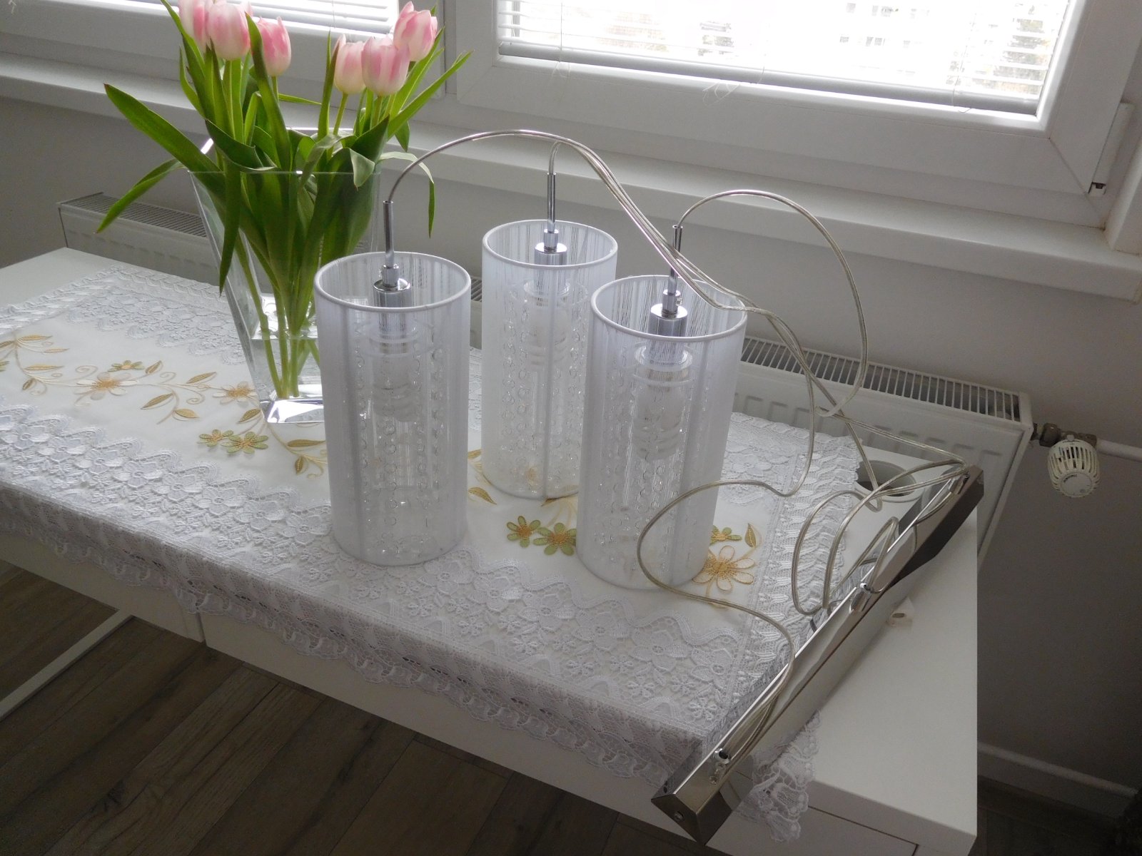 Ponúkam na predaj luster viď foto, bez akého koľvek poškodenia, dlžka jedneho bileho valca 30 cm,