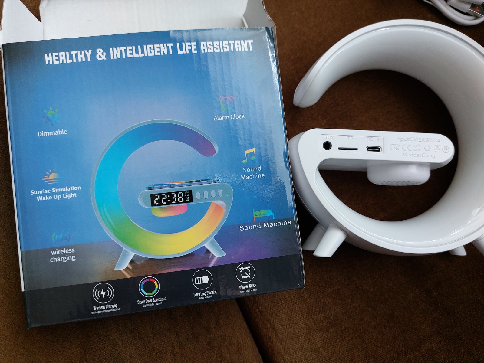 Je v tom budík, nabíjačka, reproduktor, a hodinky.