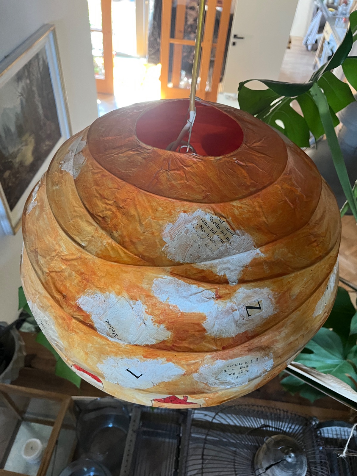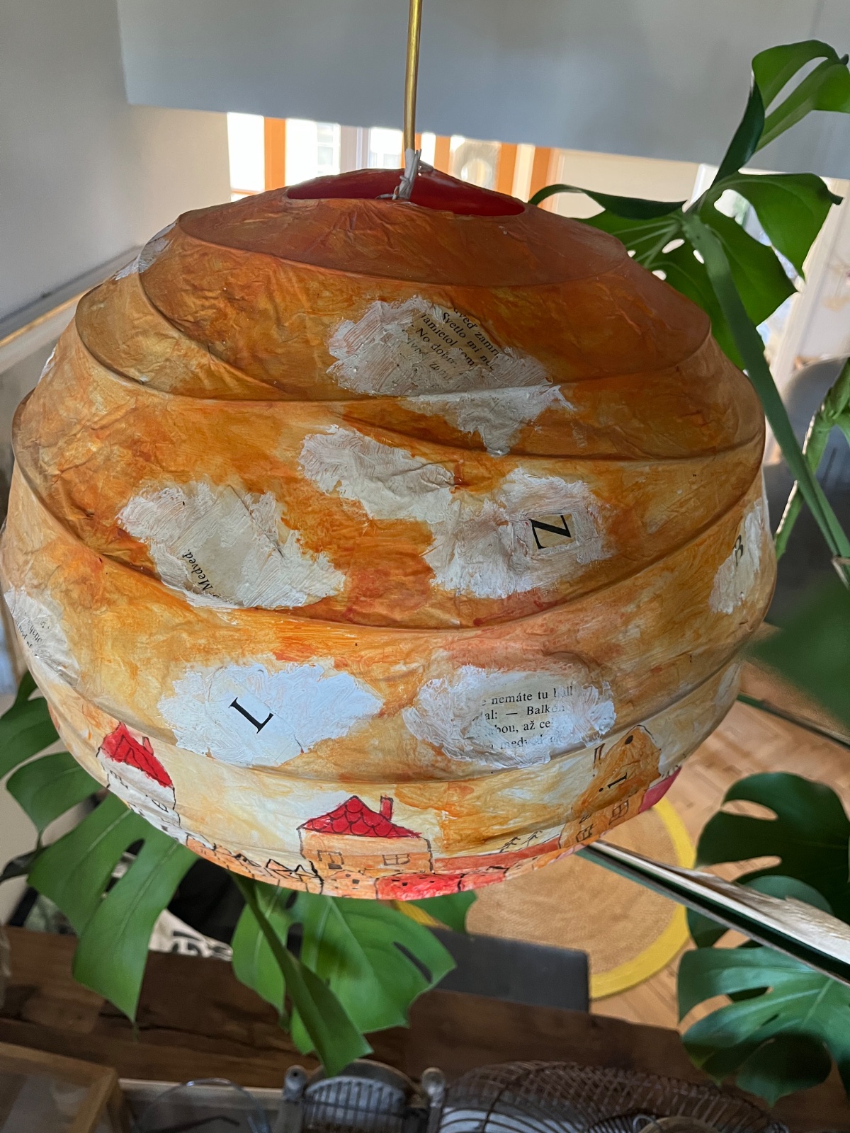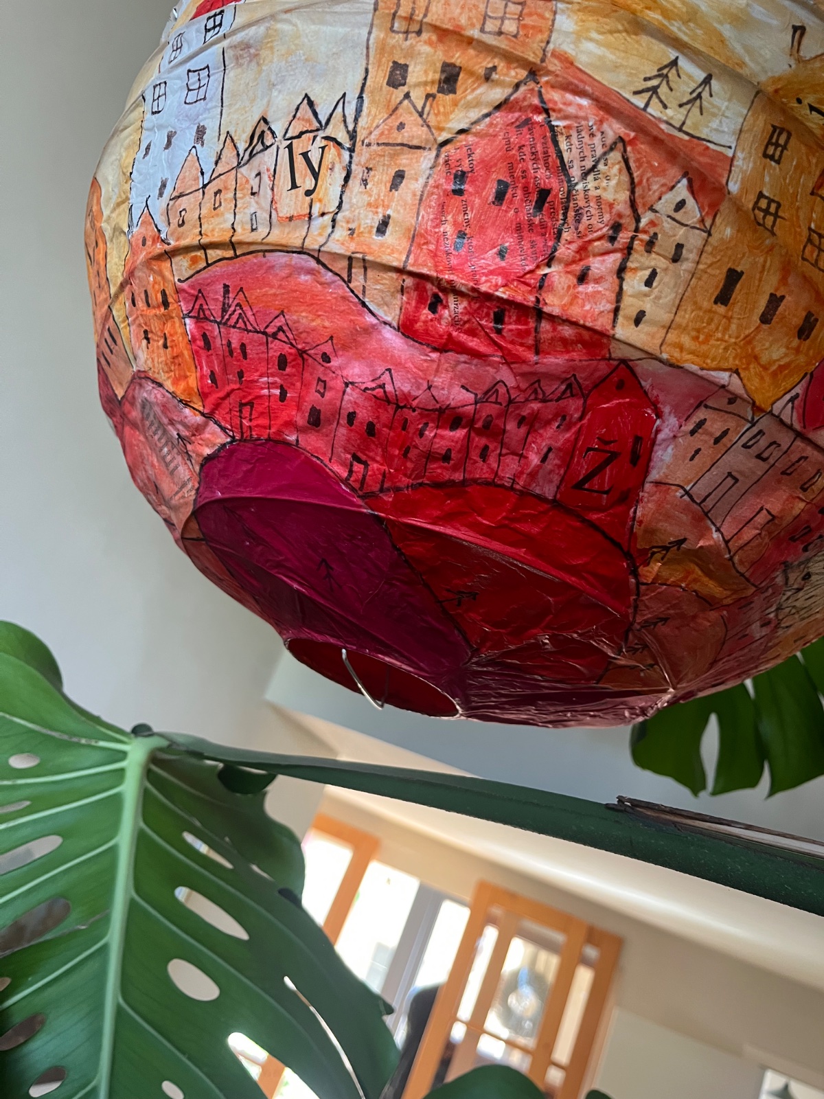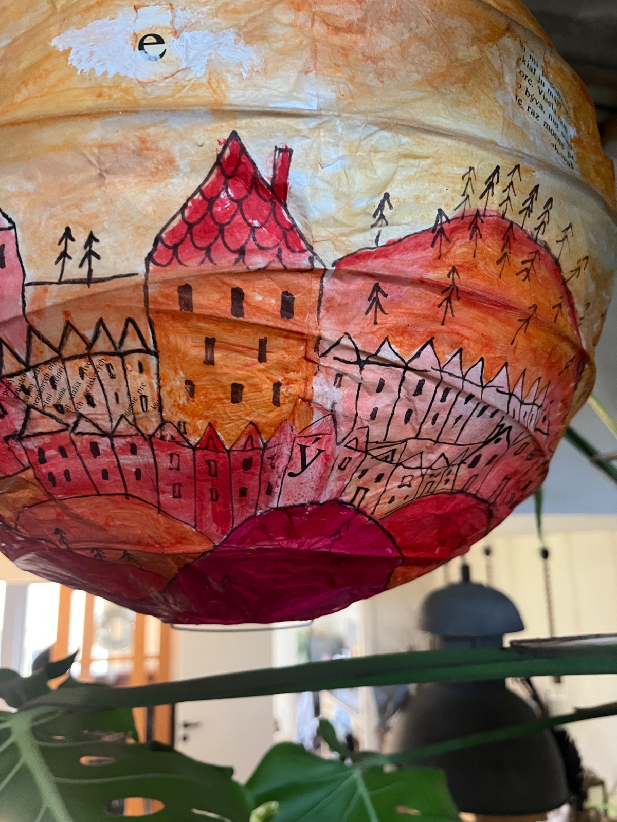 Lampa od slov.výtvarníčky Sone Mrázovej,papierová,malba fixovaná matným lakom.Vnútro duplicitne spevnené papierom.Može sa čistiť aj vlhkou handričkou,aj na sucho.Pošlem aj poštou,ale príplatok za krehké!