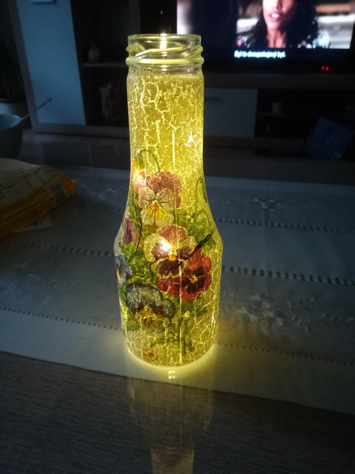 Svetelna dekoracia. Tvorena technikou decoupage vo vnutri je sveteln retaz ktora sa da vypinat a zapinat