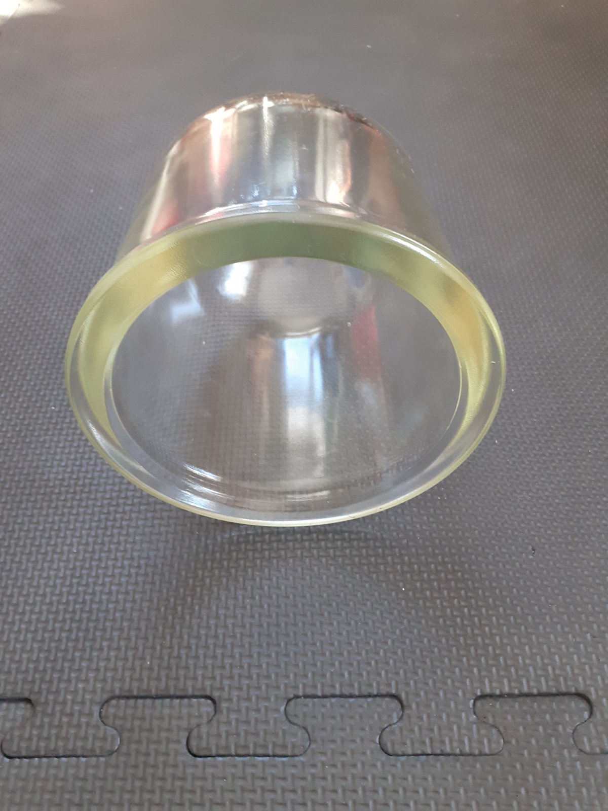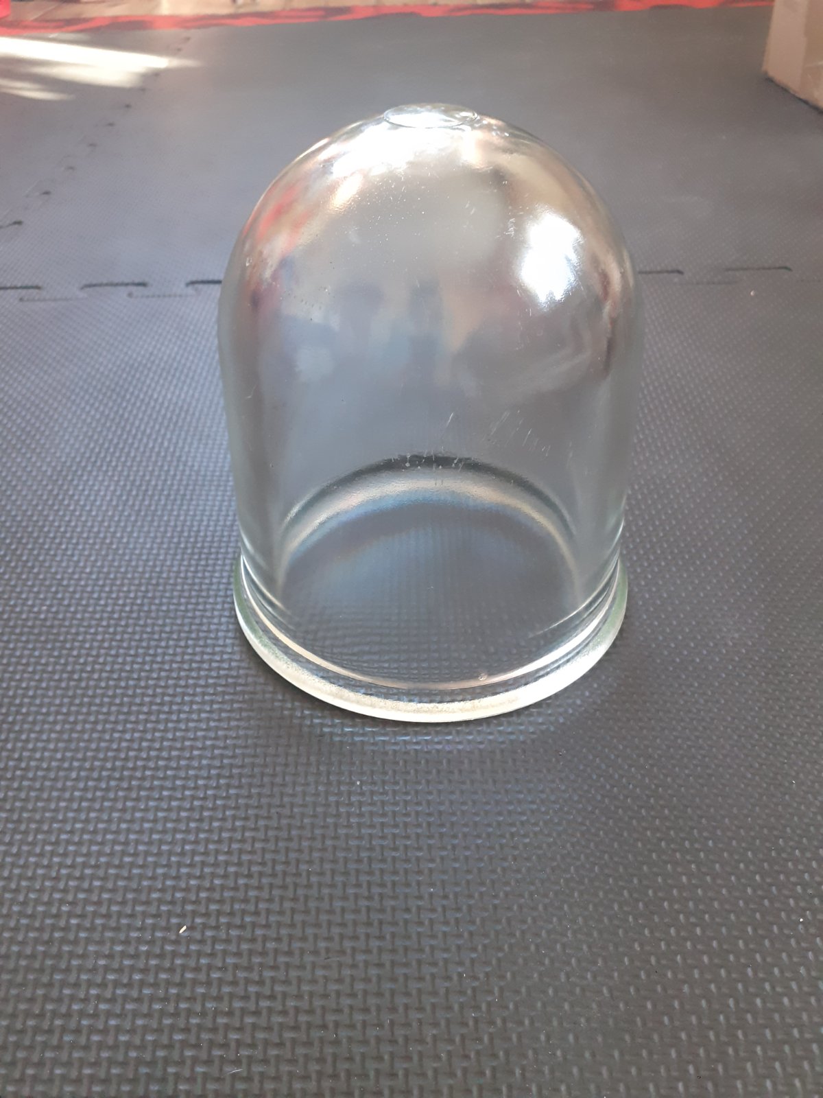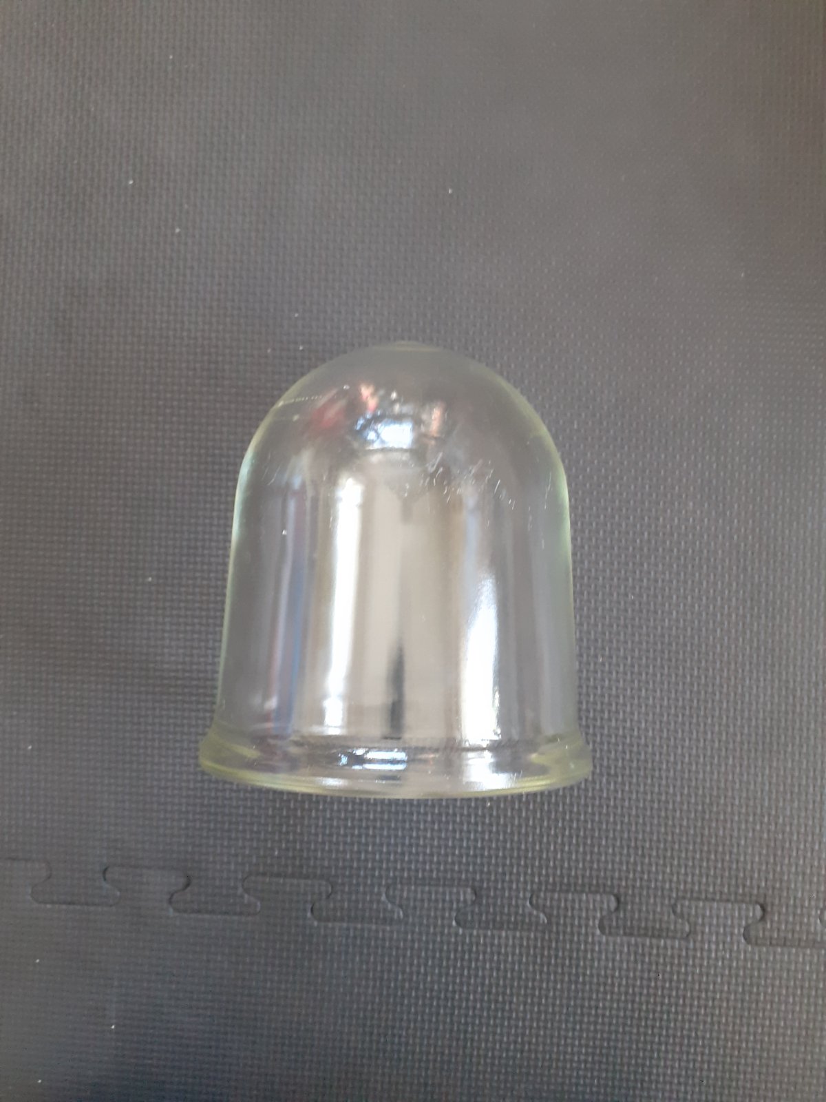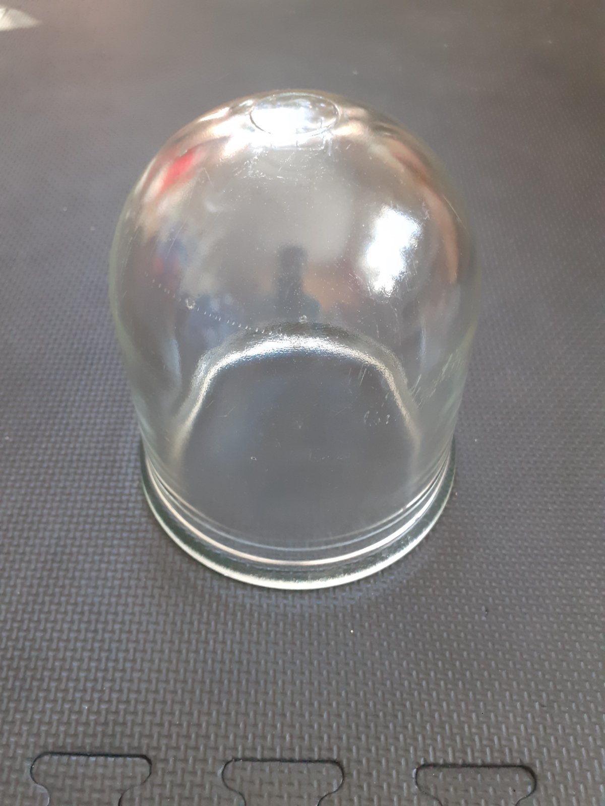 Predám staré socialistické tienidlo / kryt na vonkajšiu exteriérovú lampu / svietidlo z masívneho hrubého jednoliateho skla. Výška 20 cm, priemer 17,5 cm, vnútorný priemer 14 cm. Tienidlo je veľmi ťažké, sem tam škrabance na povrchu skla, inak úplne v poriadku.