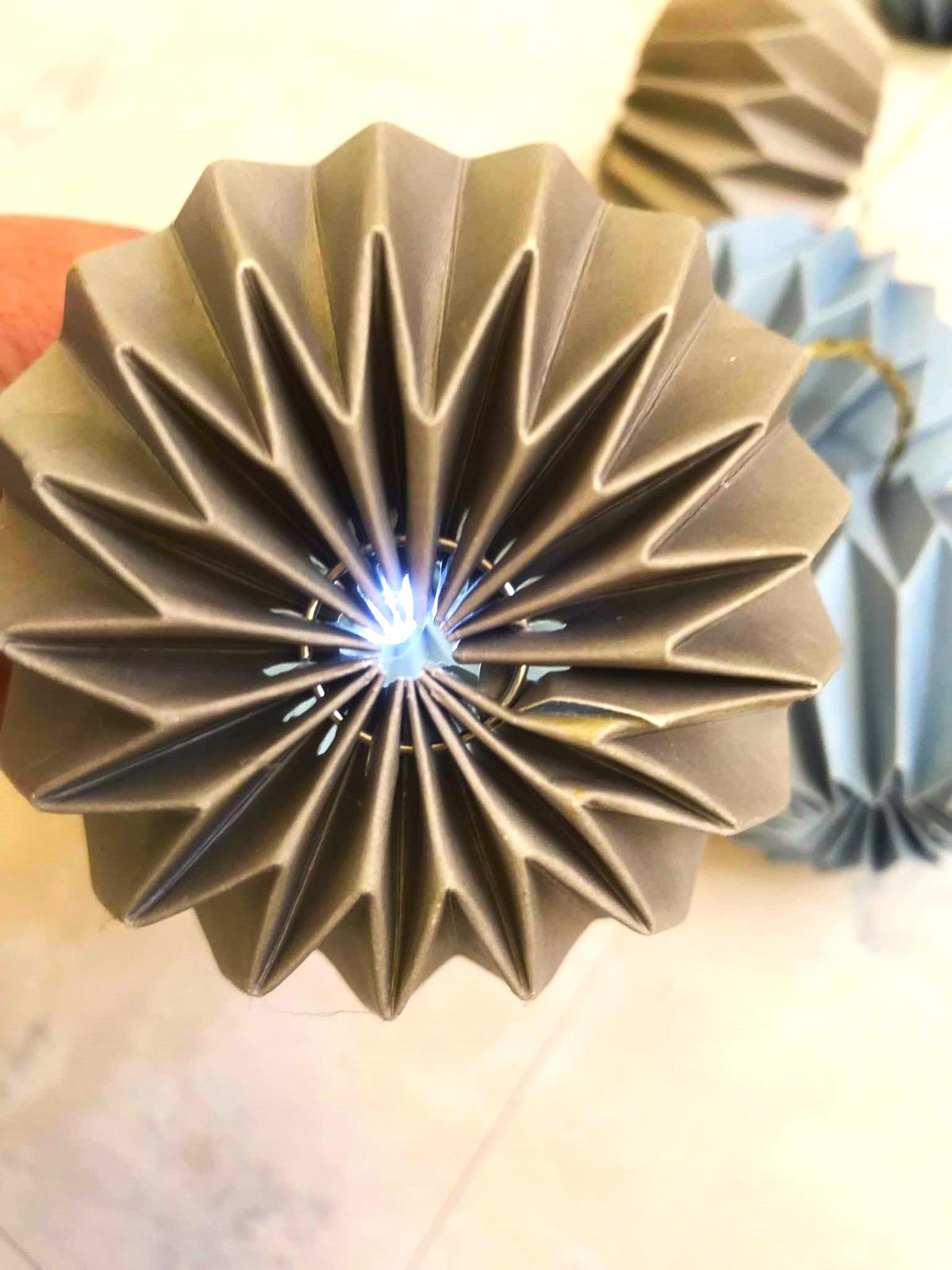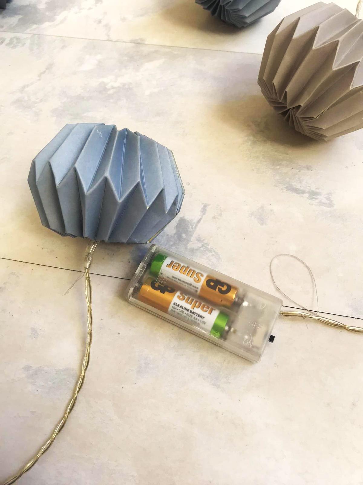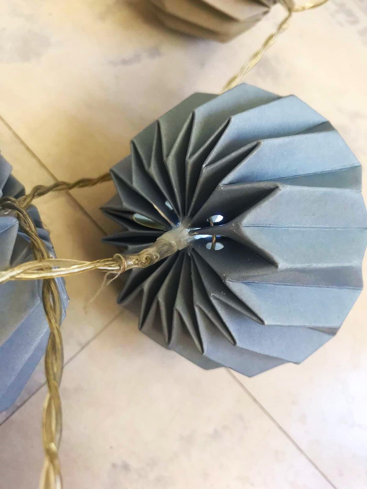 pekná dekorácia, vhodná aj do detskj izby,10 ks,jemné odtiene pastelovej oceľovo-modrej a studenej béžovo hnedej,je to pevný kartón a dnu sú žiarivky,dlžka kábliku cca 160 cm,LED 3V/20mA,výška lampiónu = 7 cm, šírka v najširšej časti = 8 cm
