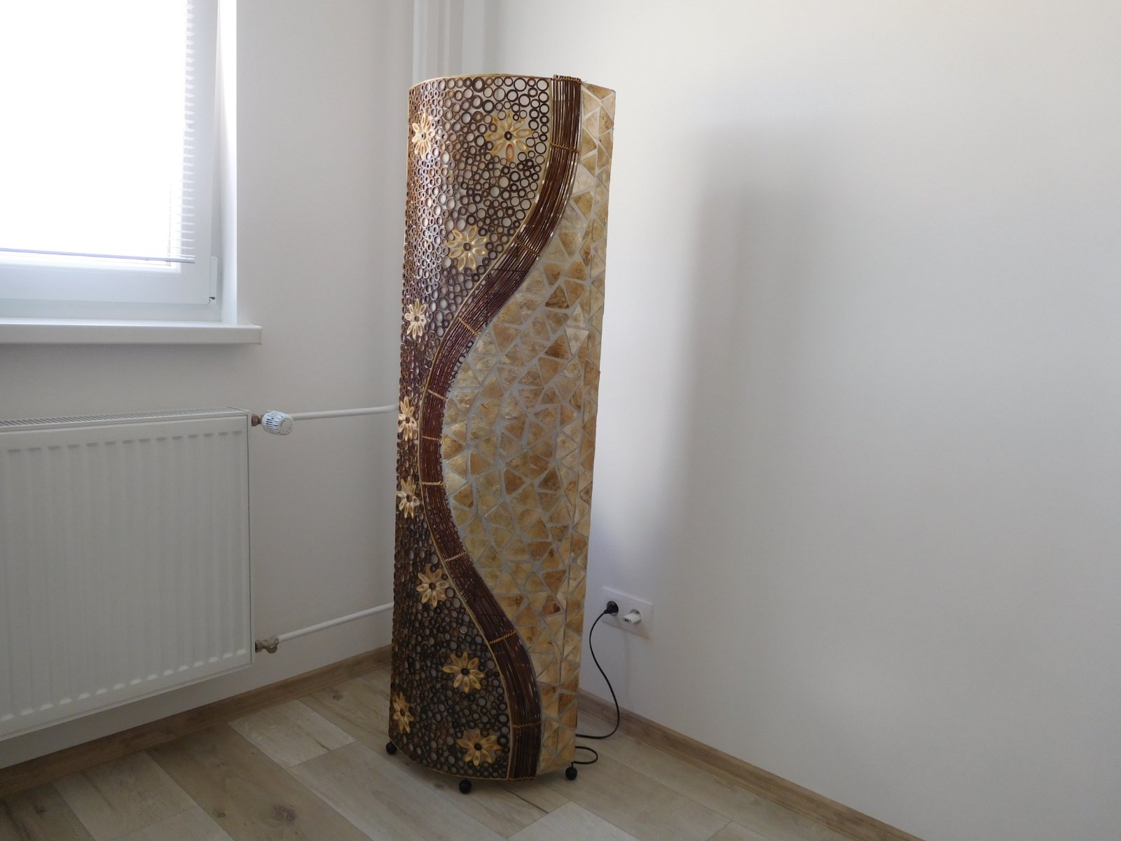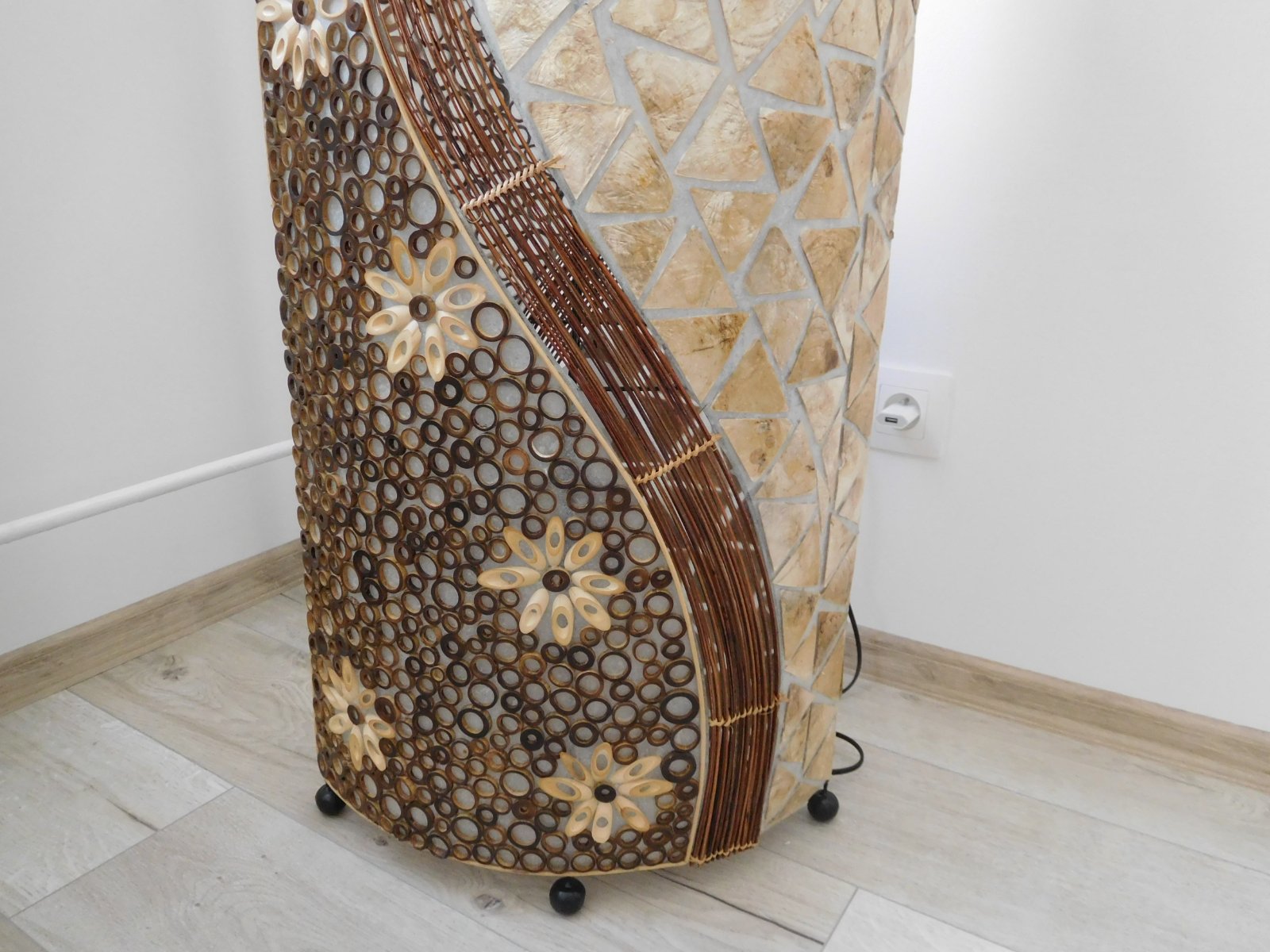 Stojanové svietidlo- Dizajn svietidla je inšpirovaný orientálnou kultúrou. Telo lampy je z kovu a plastu a morských ulít.