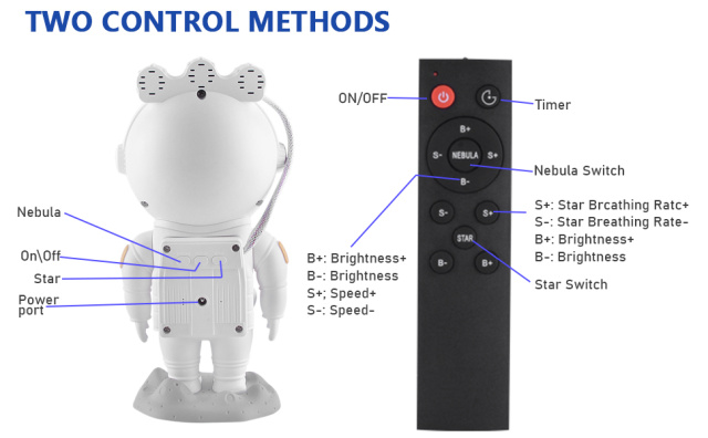-Hlava a telo projekčnej lampy astronauta sú navzájom spojené magnetmi, je odnímateľná