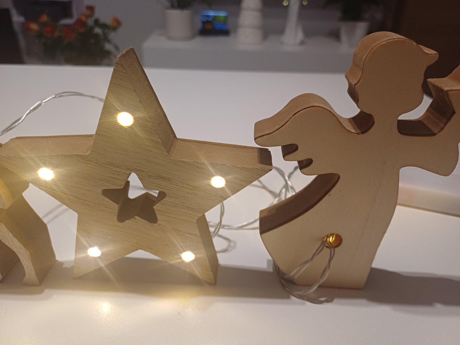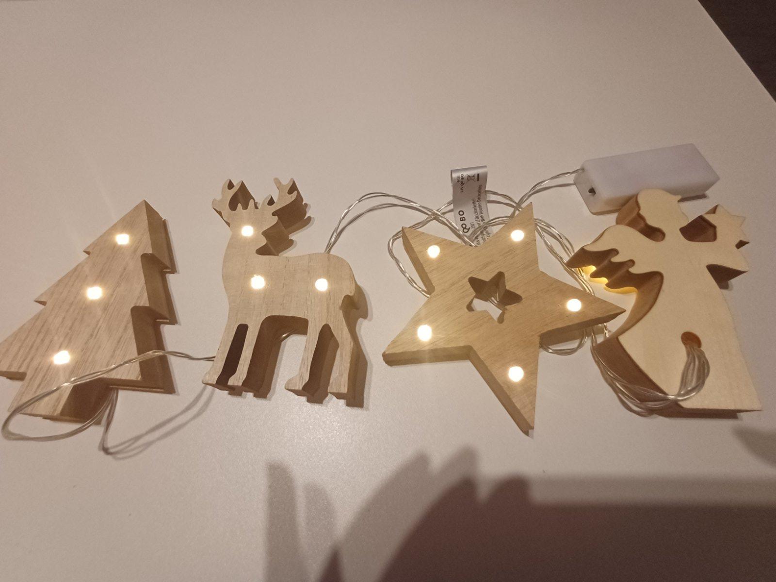Vianočné alebo atmosferické osvetlenie. Dĺžka šnúry 10 m, 20 ks svetielok v teplej, žltej farbe. Napájanie je na riadne na elektrinu. Mám 2 balenia. Jedno za 12 alebo 2 za 22 euro.