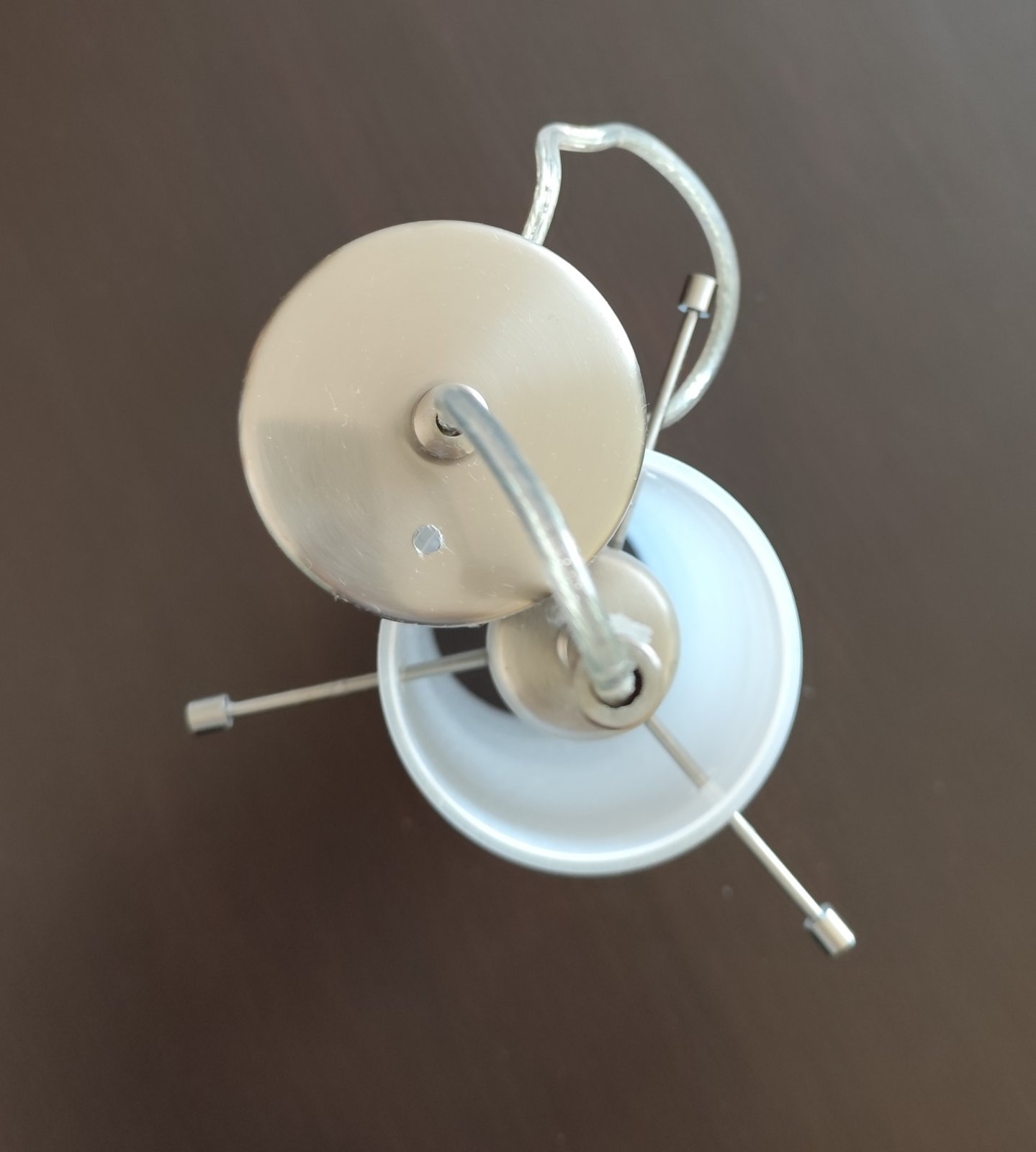 Retro, cca 50 ročná jednoduchá lampa do kuchyne. Výška tienidlo 23 cm, priemer 8,5 cm, kovová tyč 12 cm. Nepoškodená, výborný stav.
