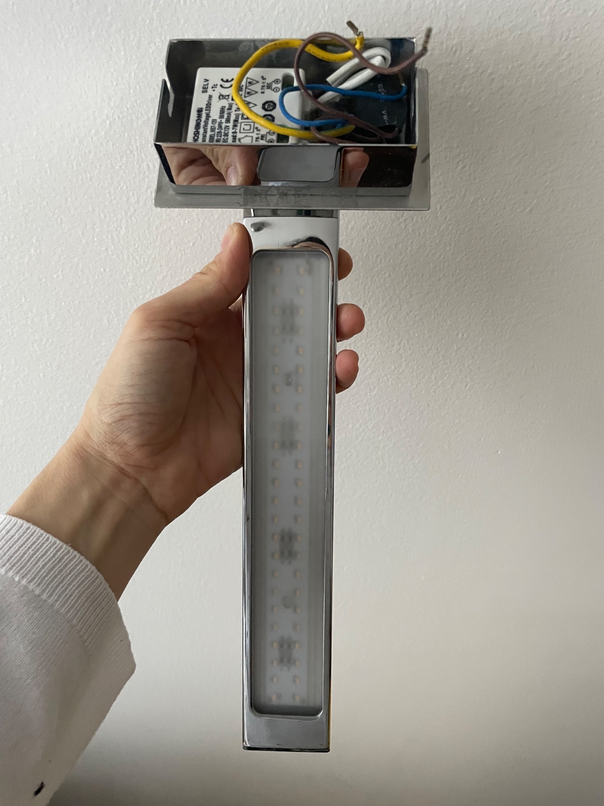 Par dizajnovych svietidiel s LED svetlom na upevnenie do elektrickeho vyvodu zo steny. S vlastnym vypinacom na boku. Dlzka cca 15cm. Dokopy za 8eur.