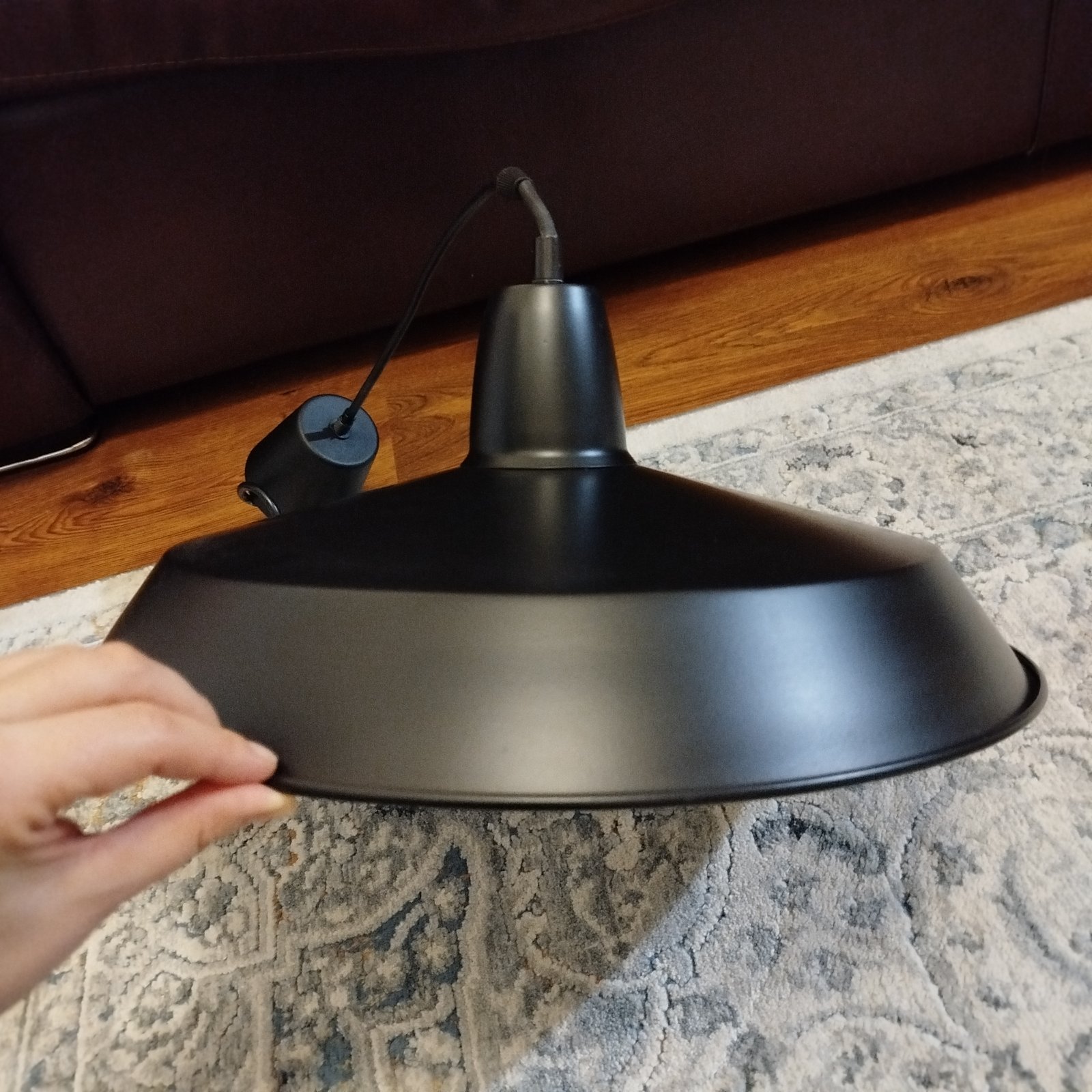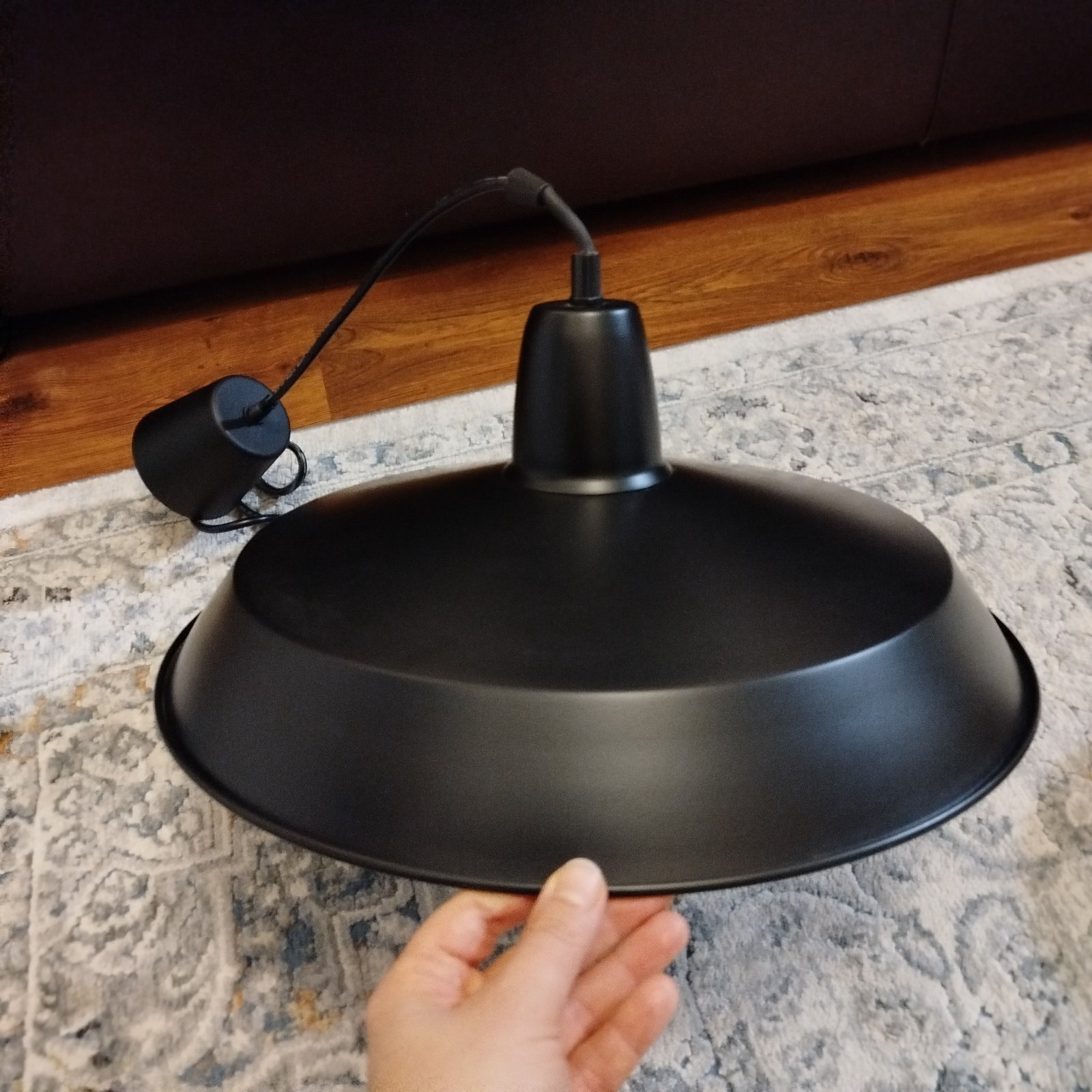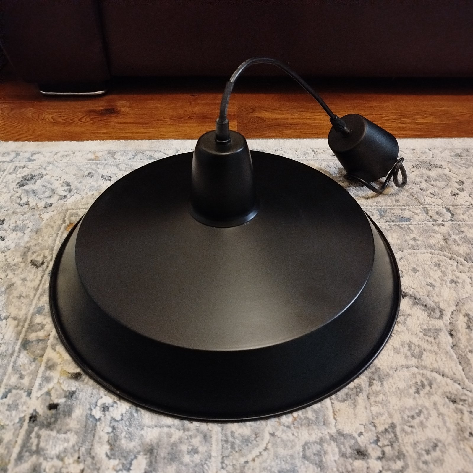 Jednoduchý kovový luster v dobrom stave. Priemer 40cm, od spodku na bielej casti má malý skrabanček, dá sa zatrieť lakom. Cena + pošta 3€ ako balík na poštu.