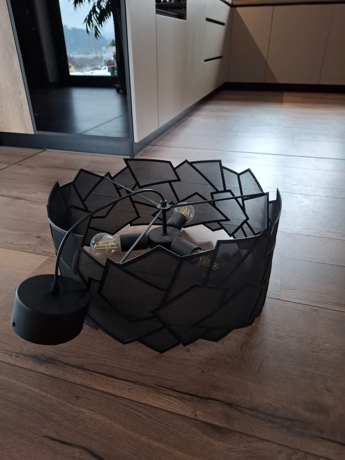 Velmi pekna lampa, ratanove tienidlo,vo vnuti mliecna sklenna lampa. Je potrebne kupit si kabel a objimku,tato je odstihnuta. My sme tiez kupovali, da sa to v elektre dokupit. Bez zavad.