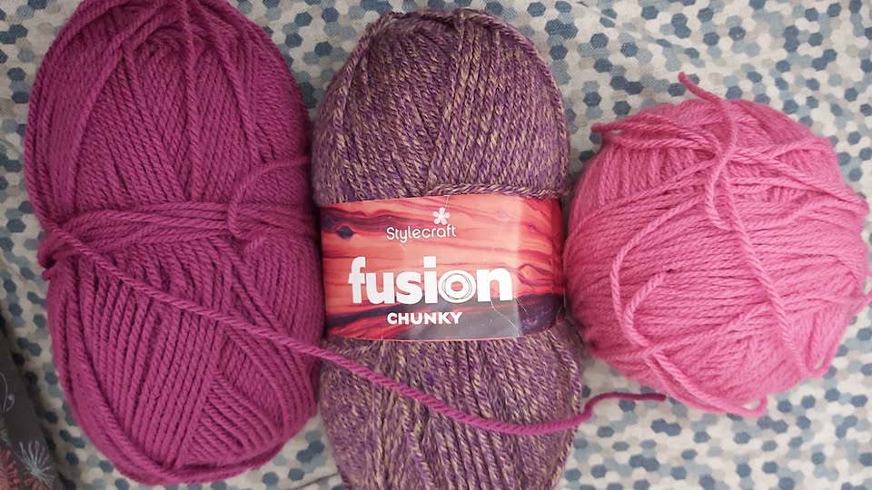 Klbka Lada luxus, dva odtiene ruzovej a makučká melirovana Fusion, so zlato-hnedymtónom vo fialovej