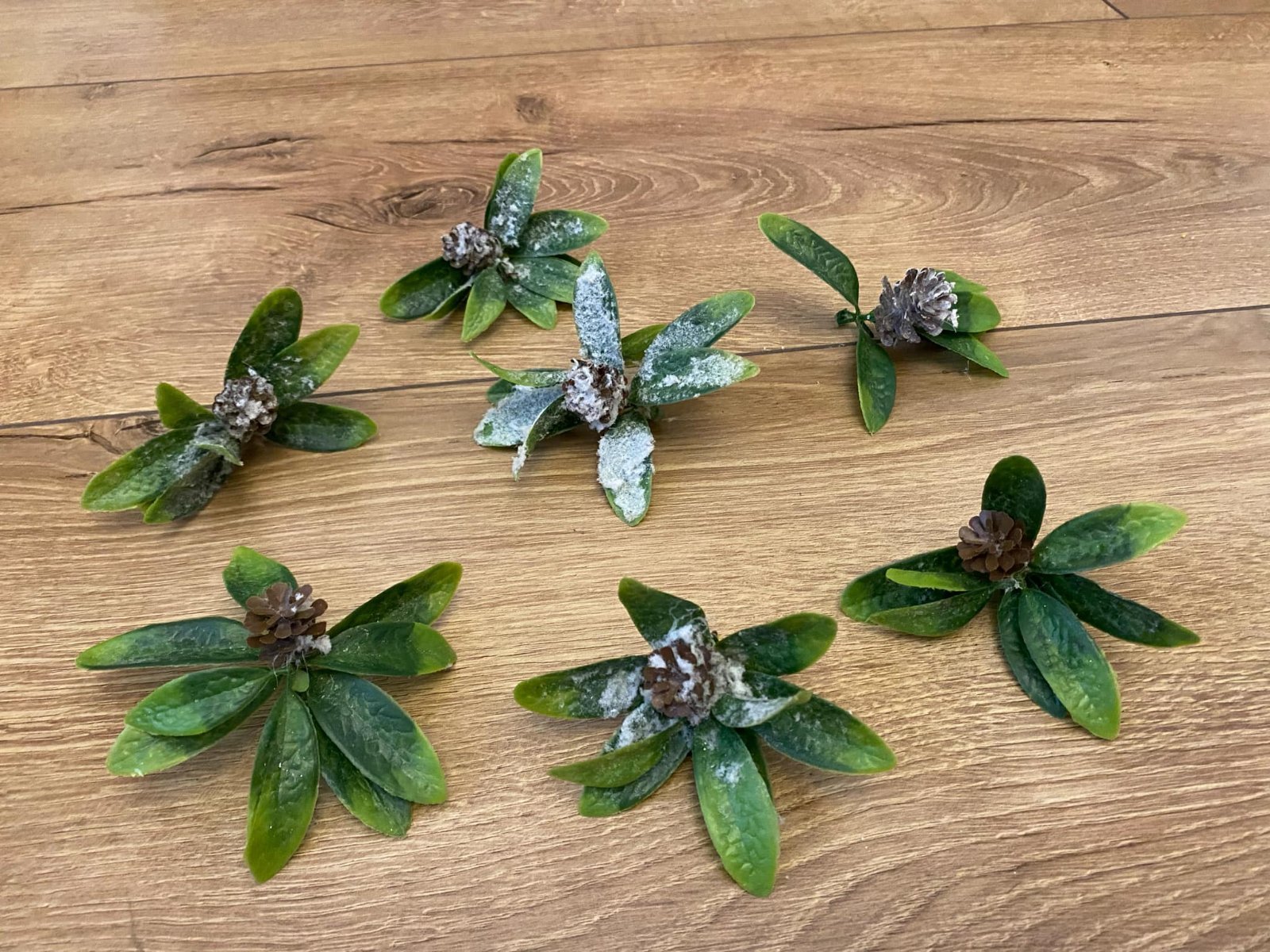 Lístočky zasnežené so šiškou 7 ks