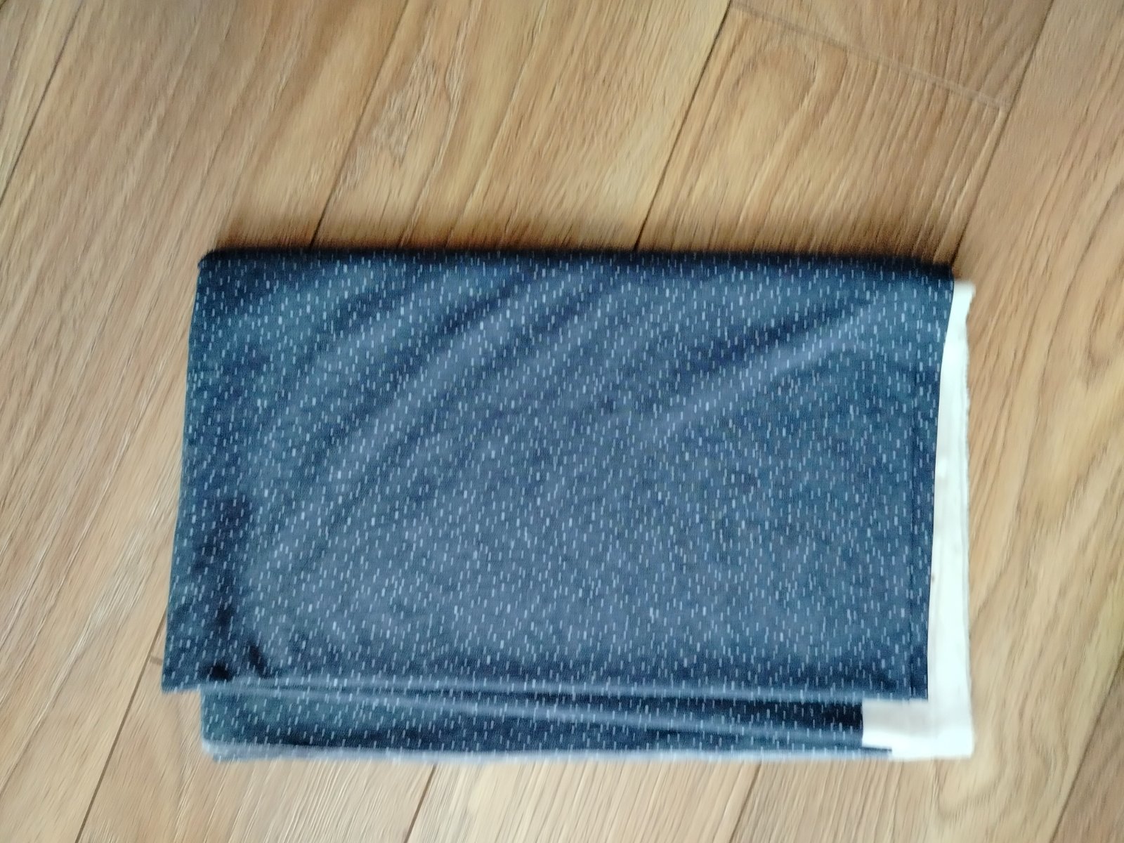 Predám polyesterový úplet PES v tmavosivej/modrej farbe so svetlými jemnými bodkami.