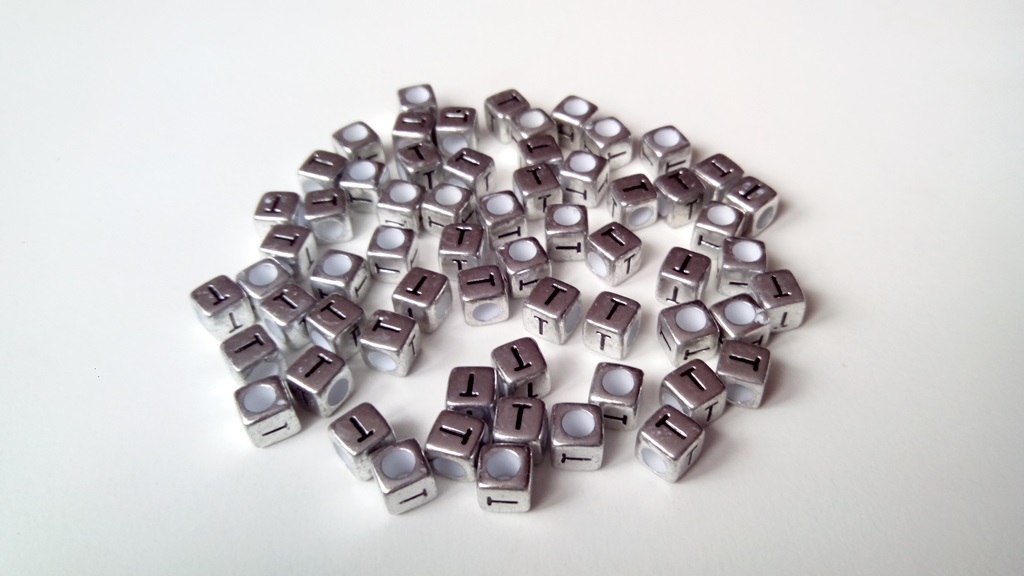 Písmenka strieborná 6x6, materiál plast. Cena za jeden kus 0,05 €