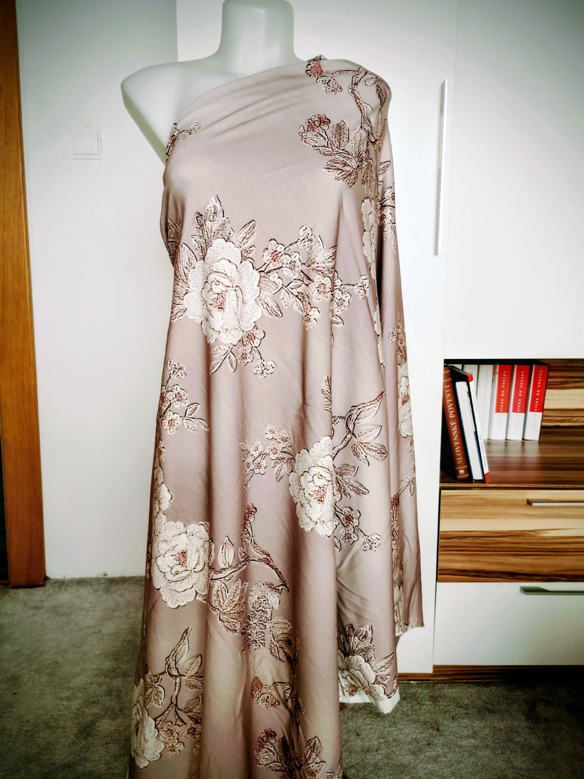 Rozmer je na fotkách 190x90cm, nová látka, nevyužijem ju. Je to elastický materiál. Vhodná na šaty, tričko či sukňu.