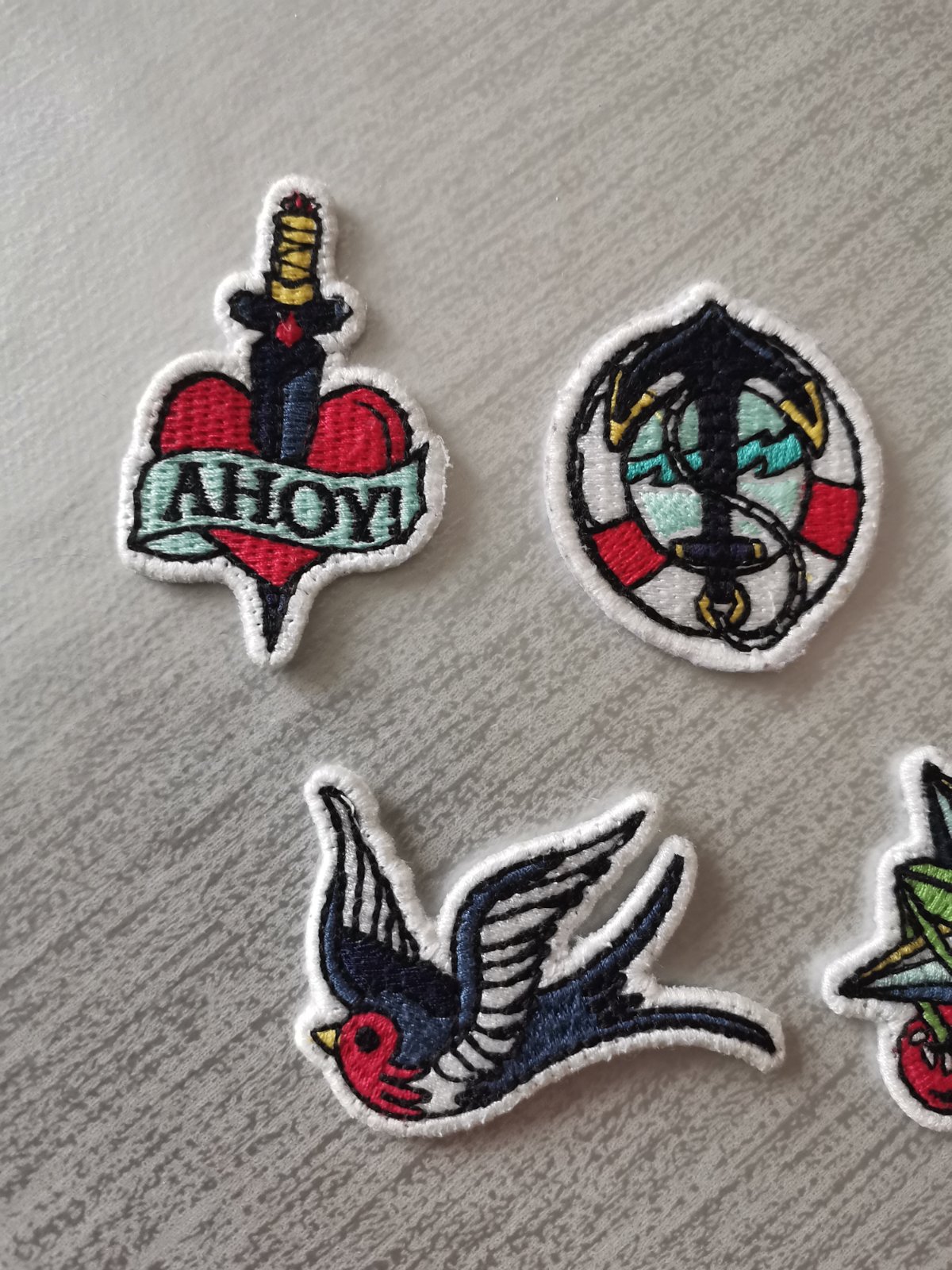 Nášivky na košeľu, blúzku alebo inú časť odevu.