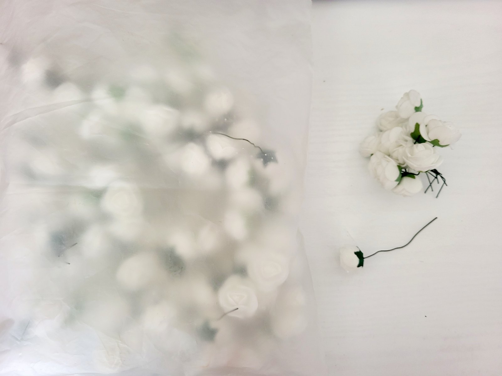 Plný veľký sáčok bielych ružičiek s drotikom. Na uchytenie....na ďalšie tvorenie