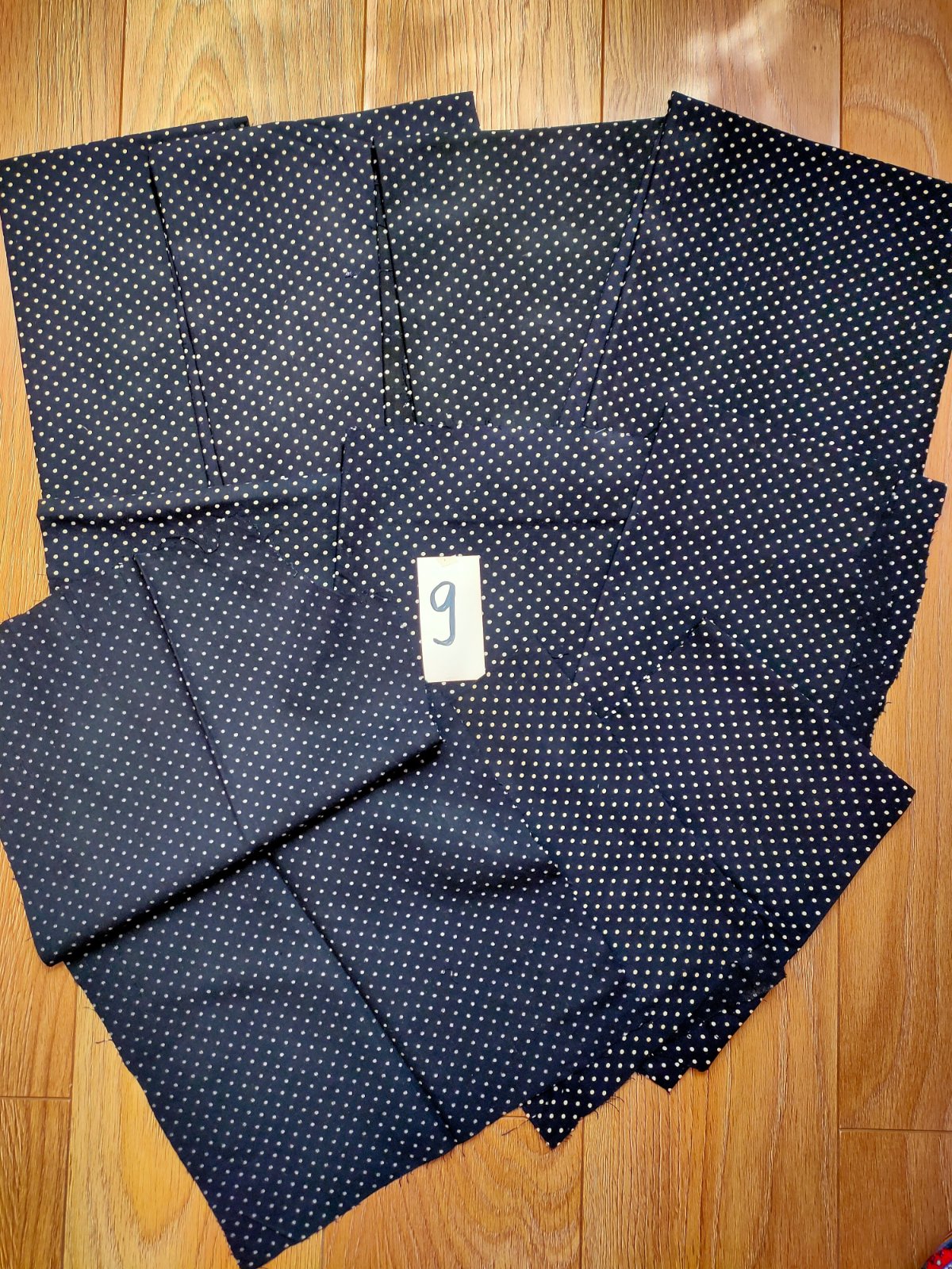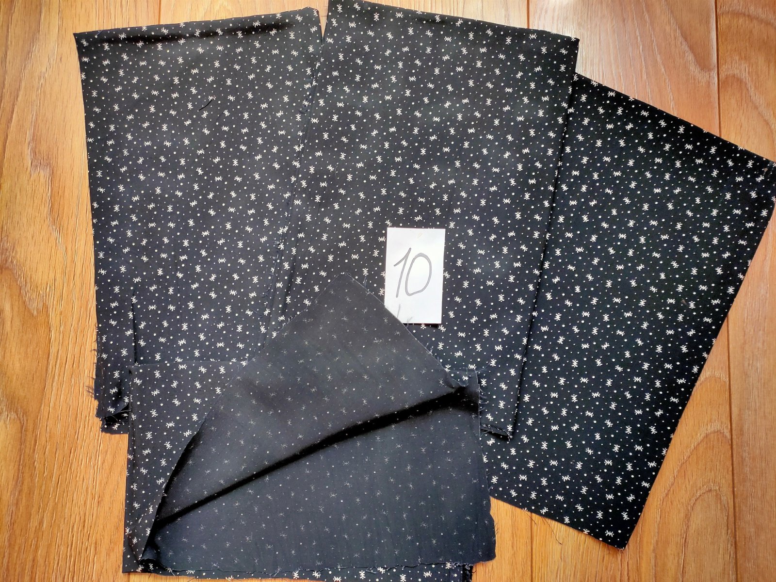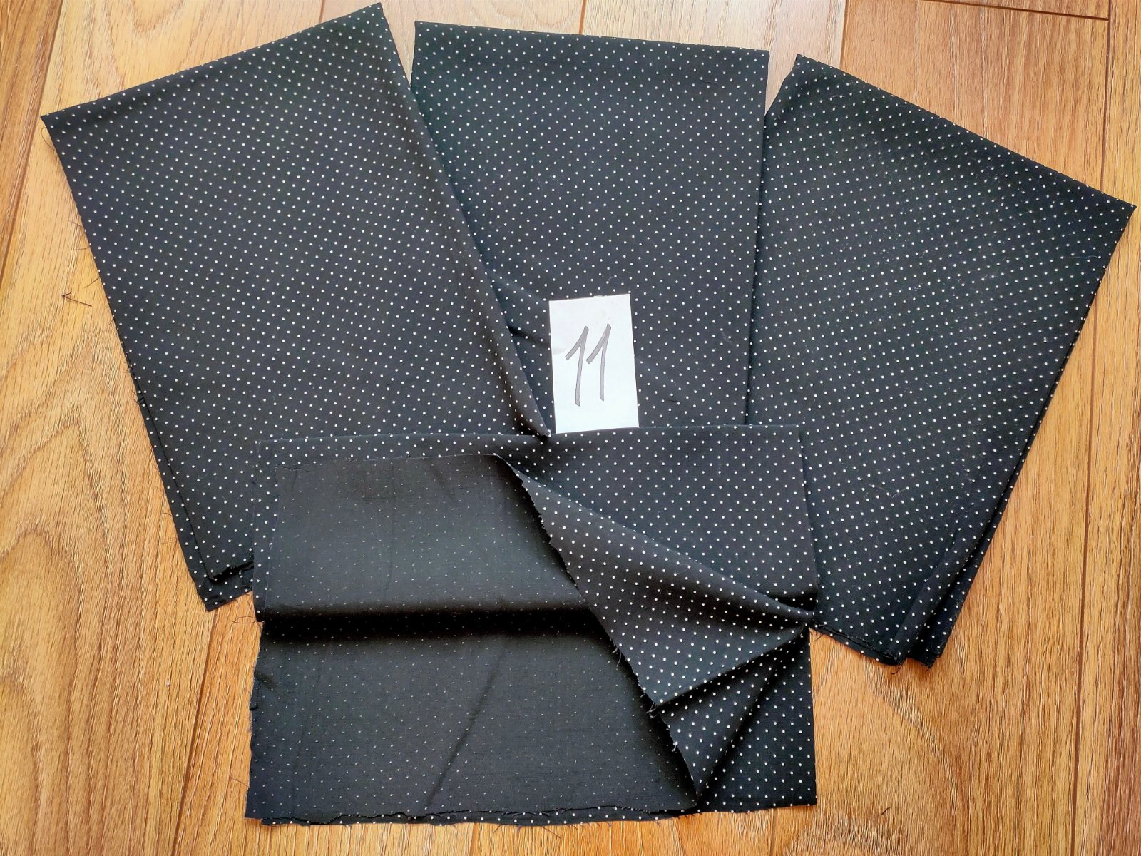 9.Šatovka,bavlna,čierny podklad,foták zle odfotil, latka vyzera ako tmavomodra, ale je čietna,biele bodky,: