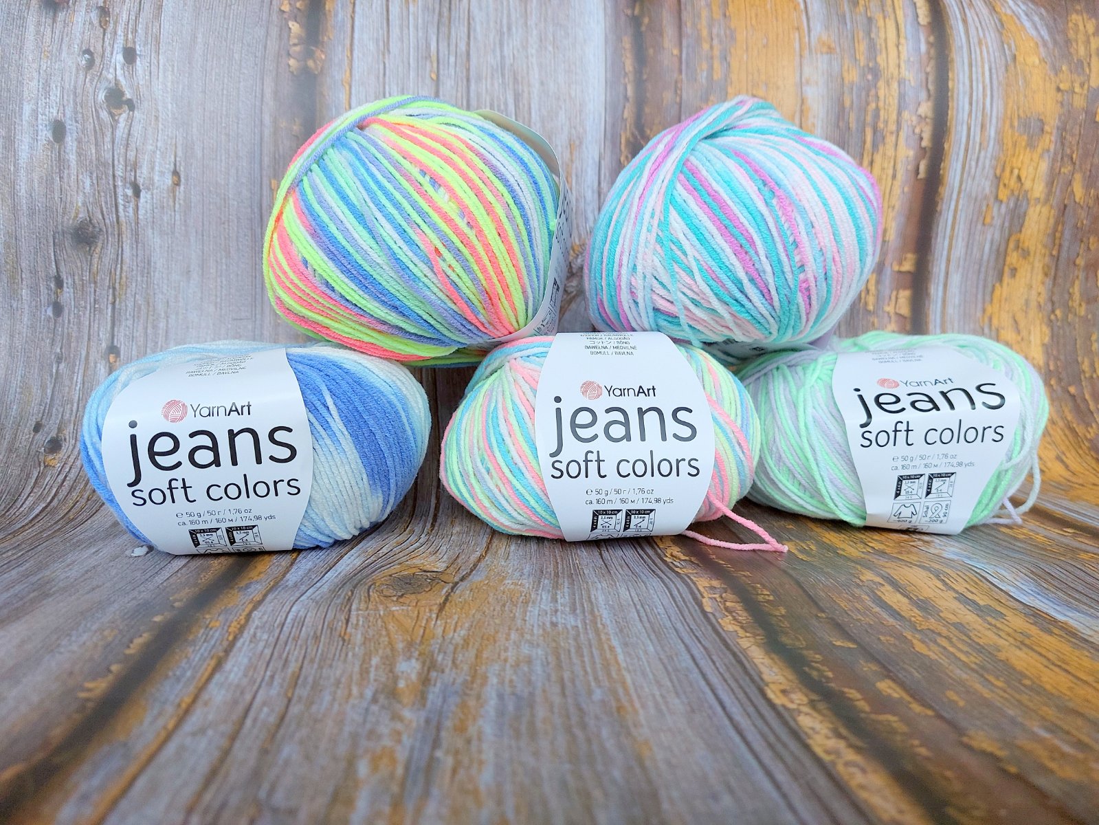 Jeans Soft Colors, ďalšie tentoraz veľmi svetlé (soft) odtiene jemne melírovanej priadze, rozširujú spektrum "rodiny" Jeans. Hrúbka aj zloženie je úplne rovnaké ako pri základnej, ale od klasickej priadze Jeans sa líšia neuveriteľne jemným pastelovým sfarbením.