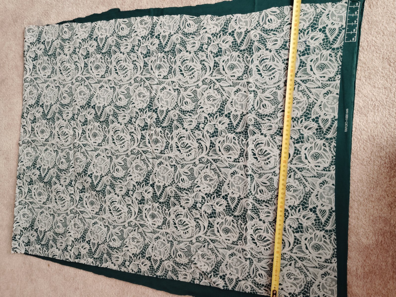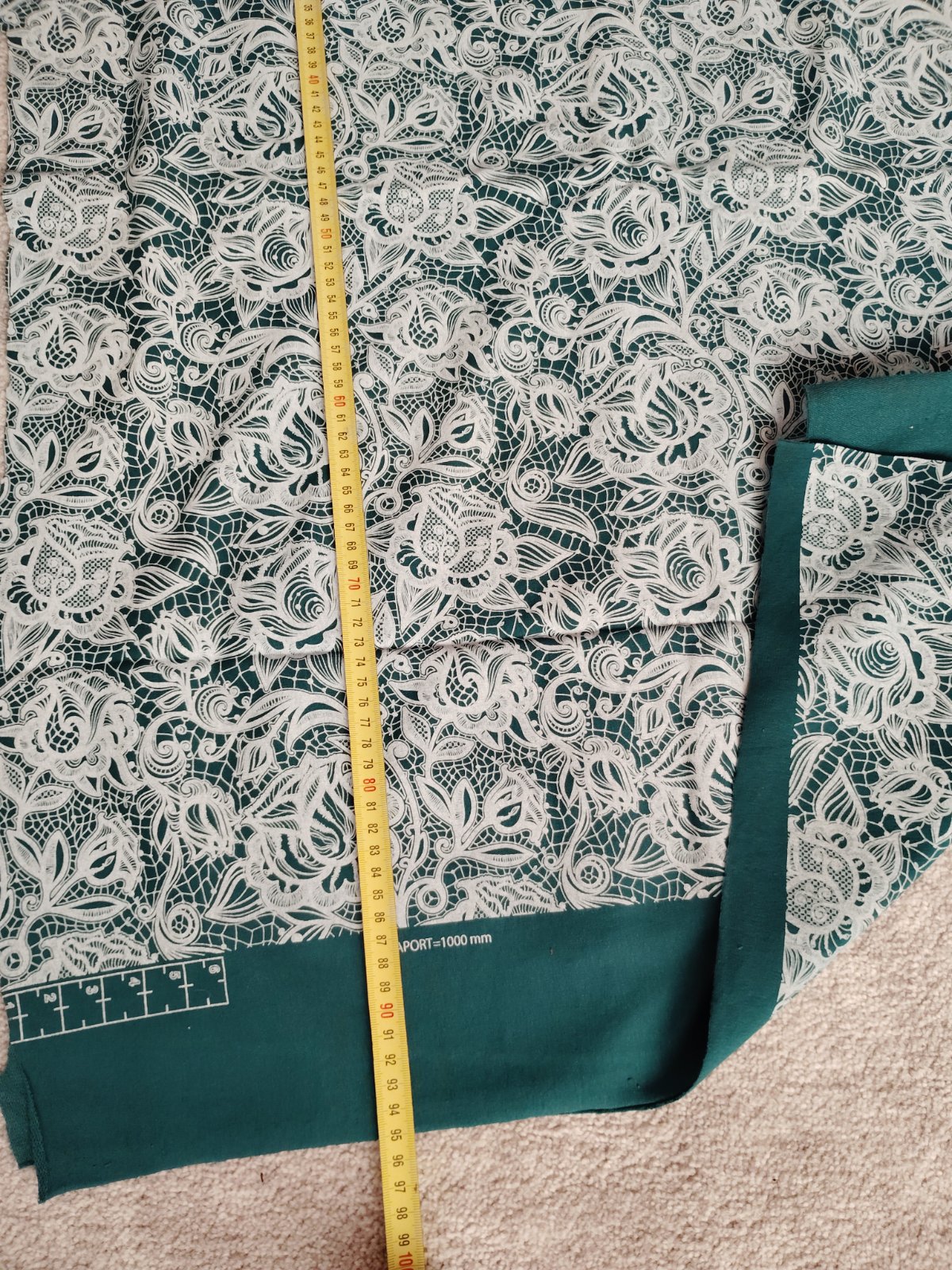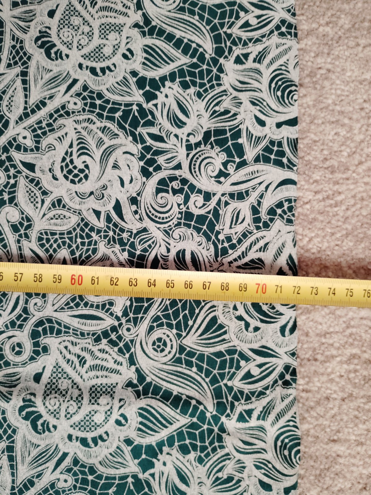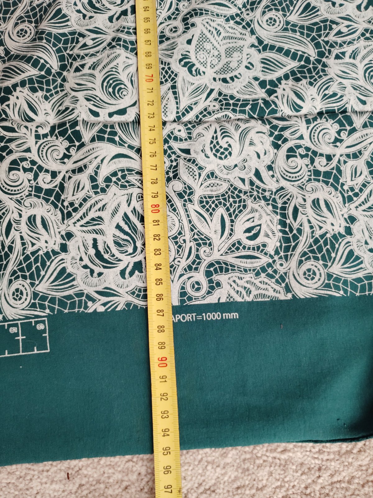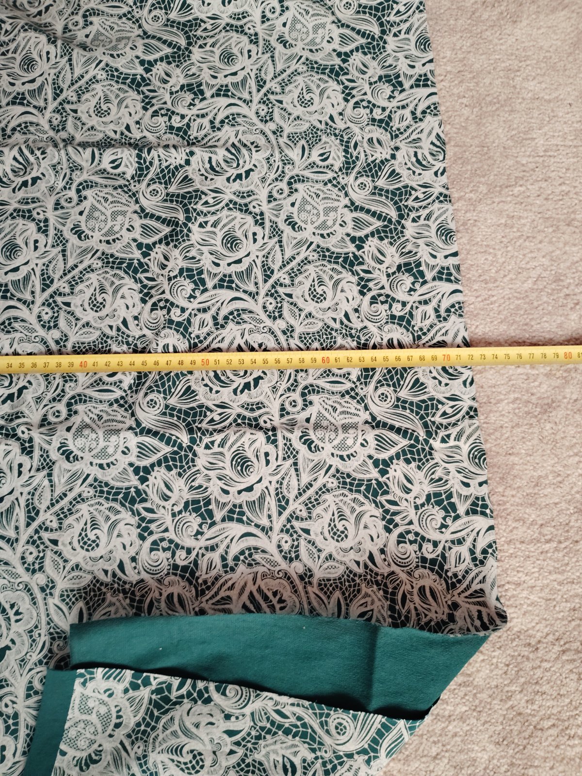 Zvyšok látky, vhodný na kombináciu, je to teplákovina s potlačou čipky. Rozmer je na fotkách -šírka je 2x90cm a dľžka 70 CM.
