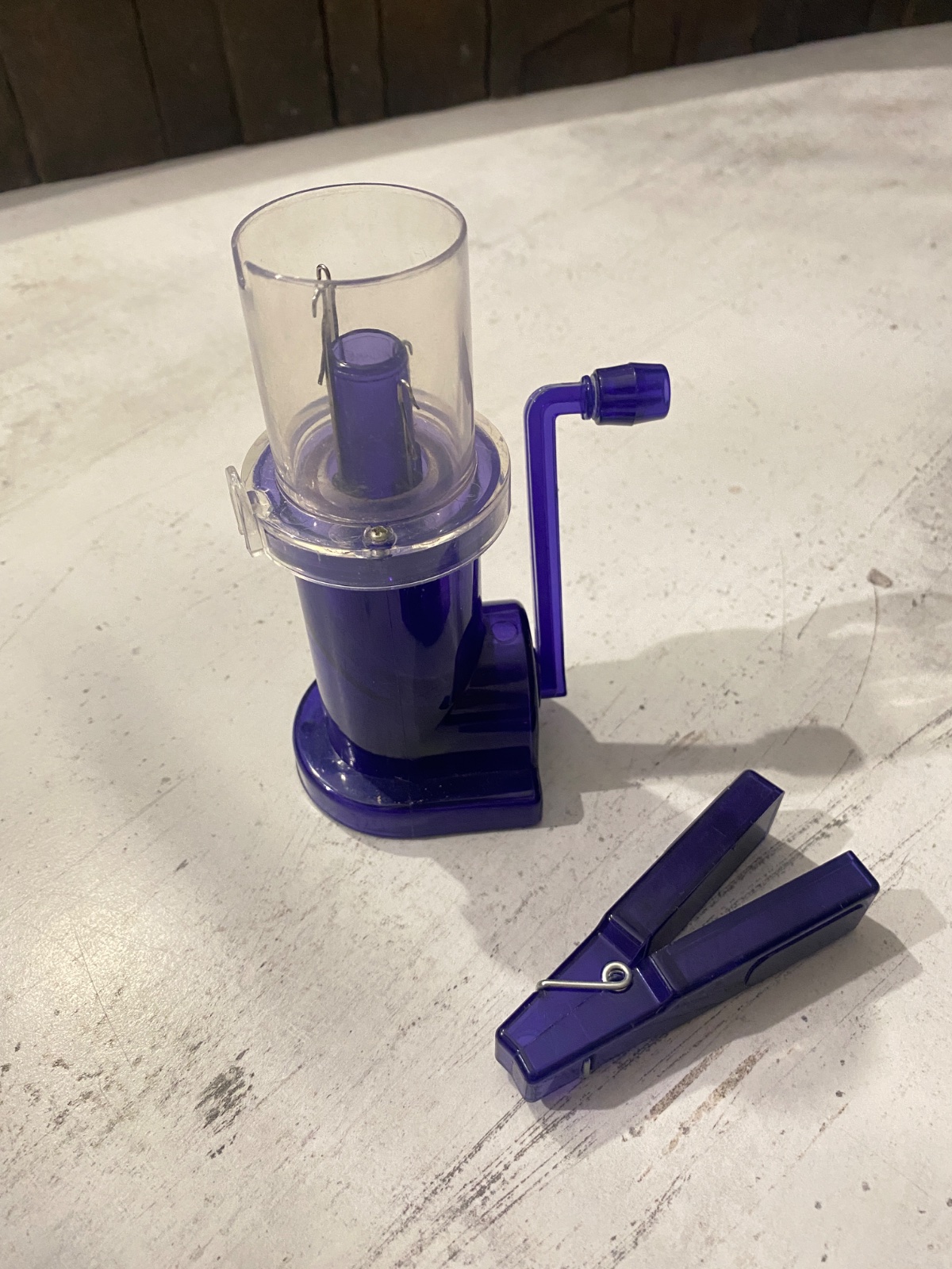 Obsah balenia: Mlynček, zaťažujúci štipec.