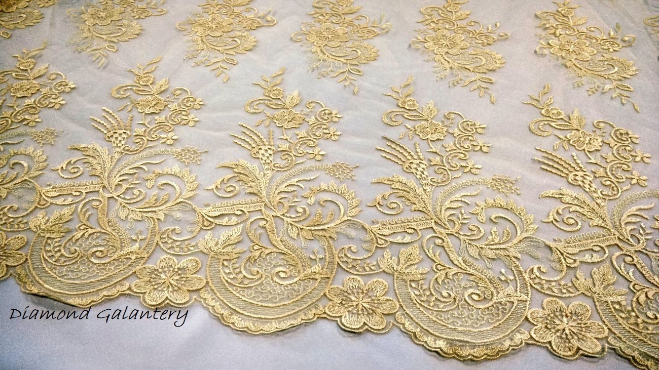 Luxusné tkané vzory na jemnom tylovom podklade. Šírka látky je 128 cm. Materiál: 100 % polyester. Len ručné pranie do 30 stupňov Celzia. Cena je uvedená za 10 cm látky, látka sa posiela v celku.