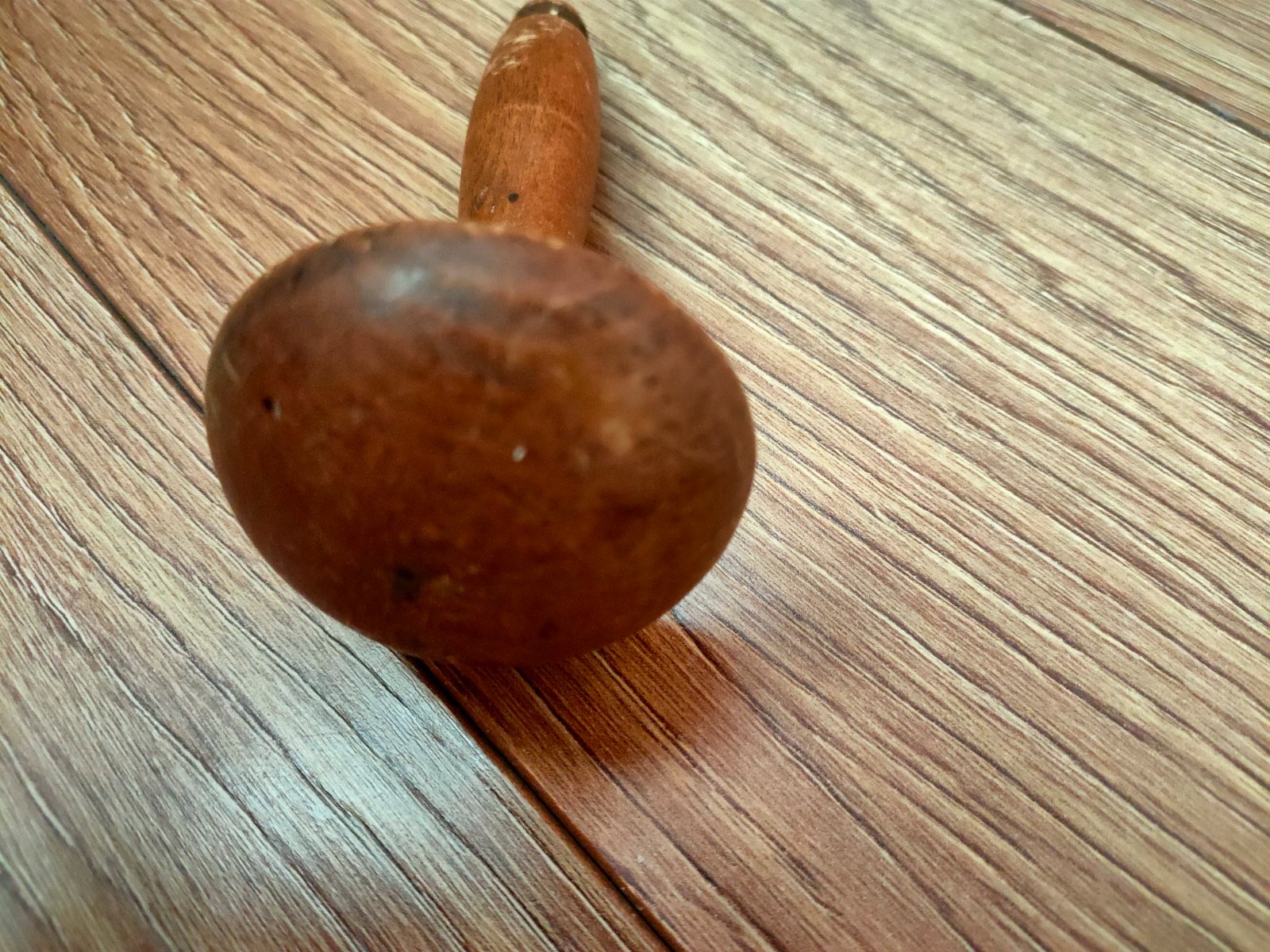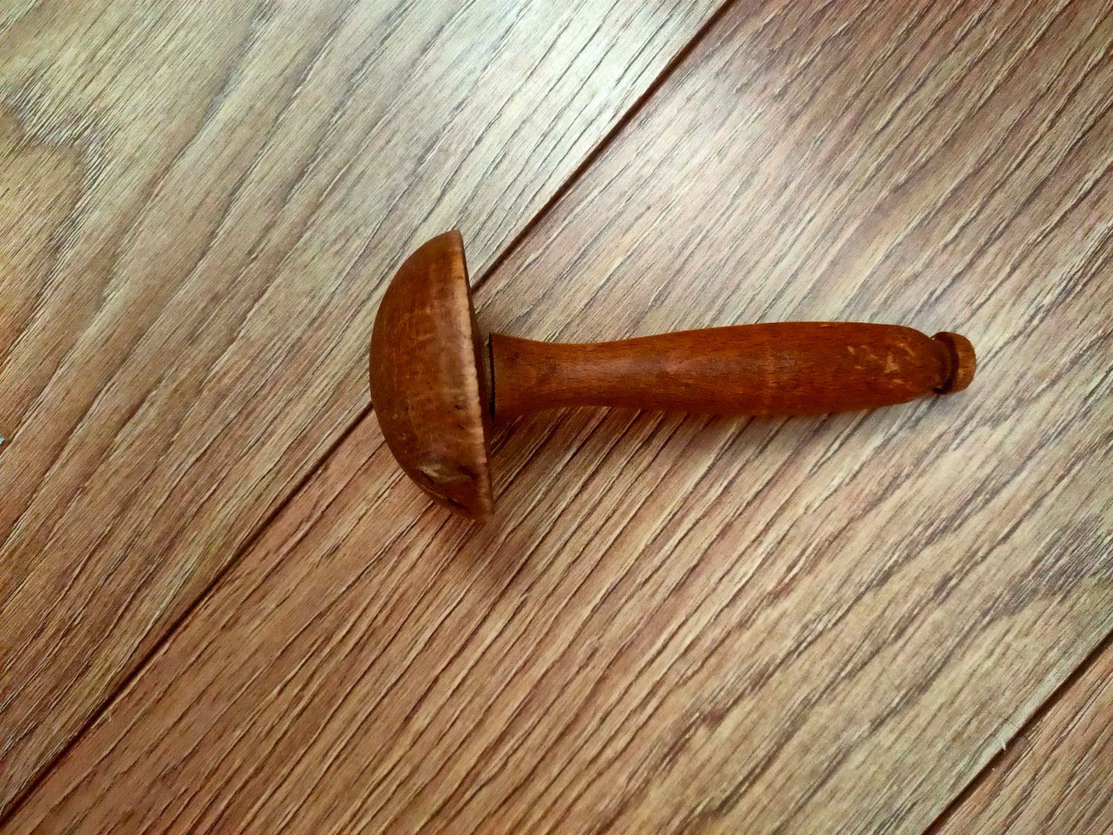 - retro drevený bezfarebný hribik, priemer hríbika je 5cm,dĺžka ručky je 11cm, inak bez poškodenia,cena 5€