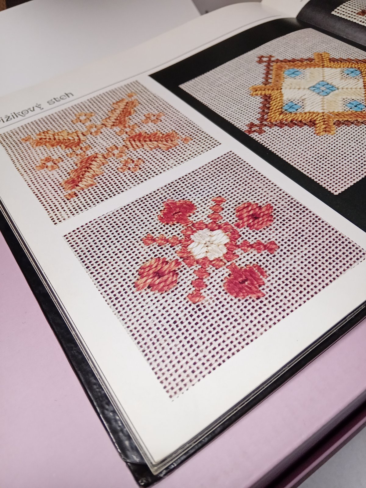 V knihe sú farebné obrázky, návod a množstvo rôznych vzorov pre hladkovanù výšivku.