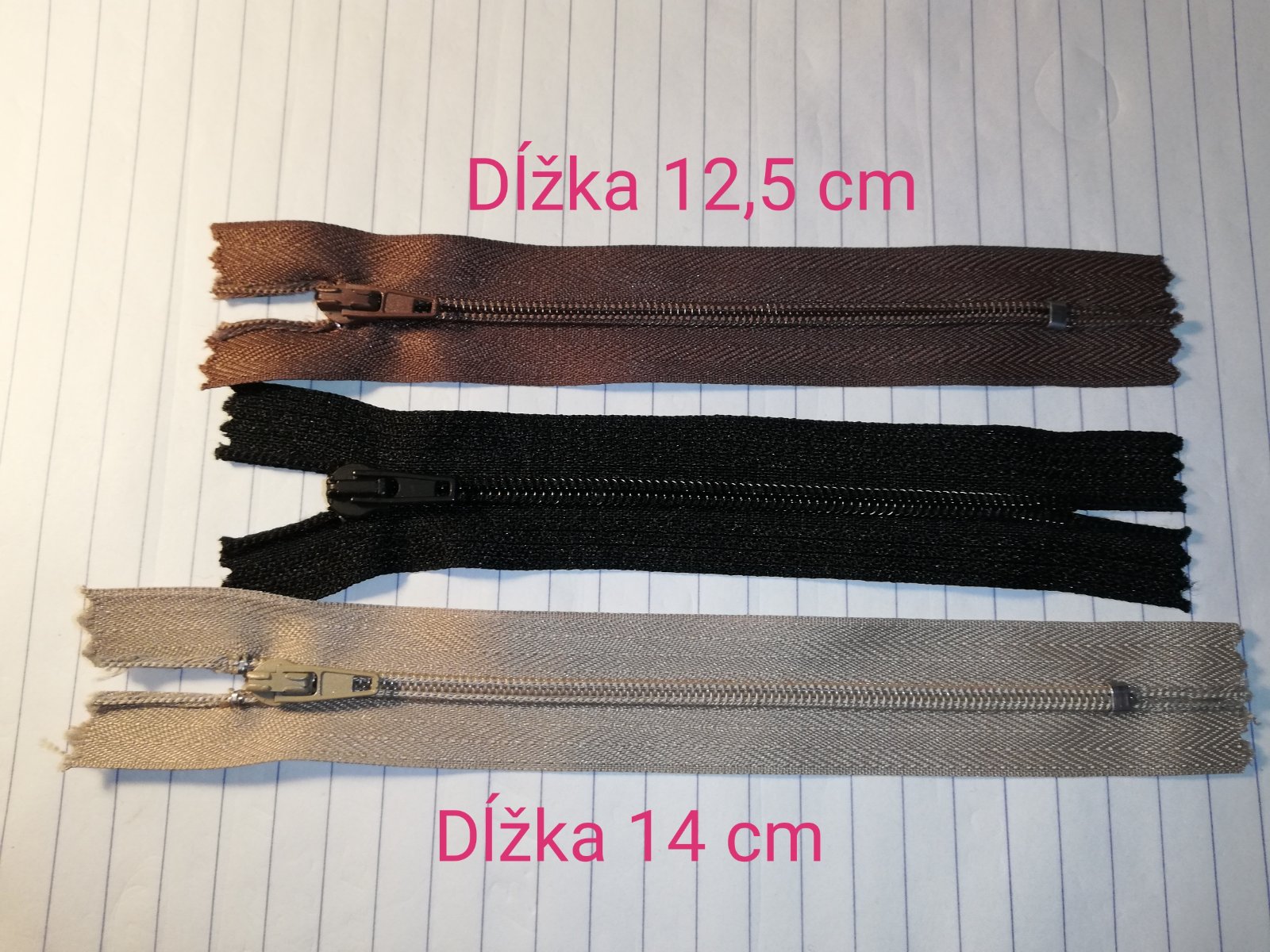Nepoškodené zipsy, cena za kus 0,30€